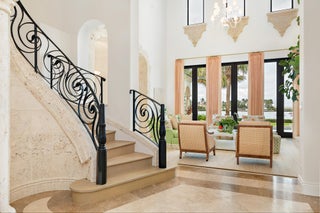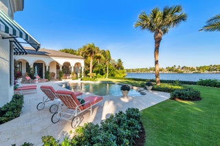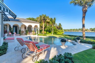 Stunning waterfront Point Manalapan residence. Sited on a .75 acre lot, with 170 feet of direct water frontage on the Intracoastal. Renovations in 2023 featured a new roof, impact doors and windows, multi-zoned A/C, tankless water heater, full house generator, custom cabinetry & closets, & top of the line finishes. With 6 BR, 8.2 BA, this home is designed with a resort style feel. The water view main level primary suite has dual baths & closets, a home office and sitting room overlooking the water. There is a chef's kitchen with top-of-the-line appliances including a Miele coffee bar, Sub-Zero refrigerator, a Wolf gas range & a separate catering kitchen. There is gated security provided by the Manalapan police & deeded membership to the Eau Spa private beach club nearby.