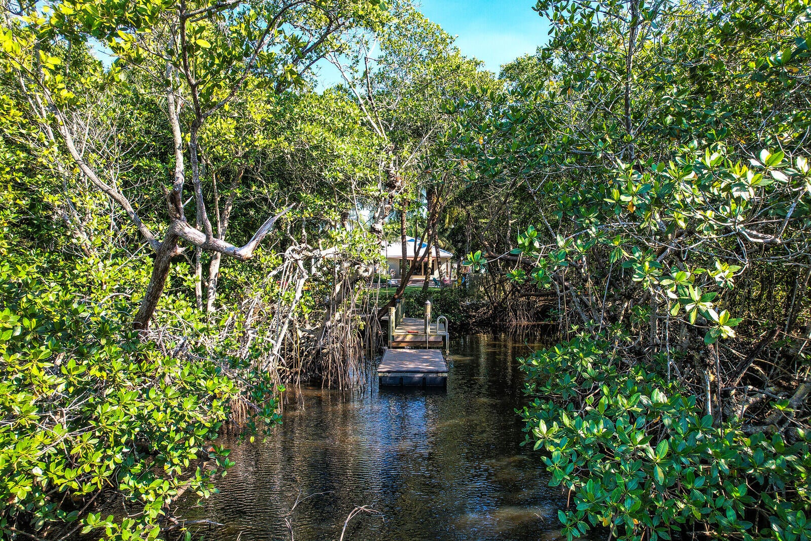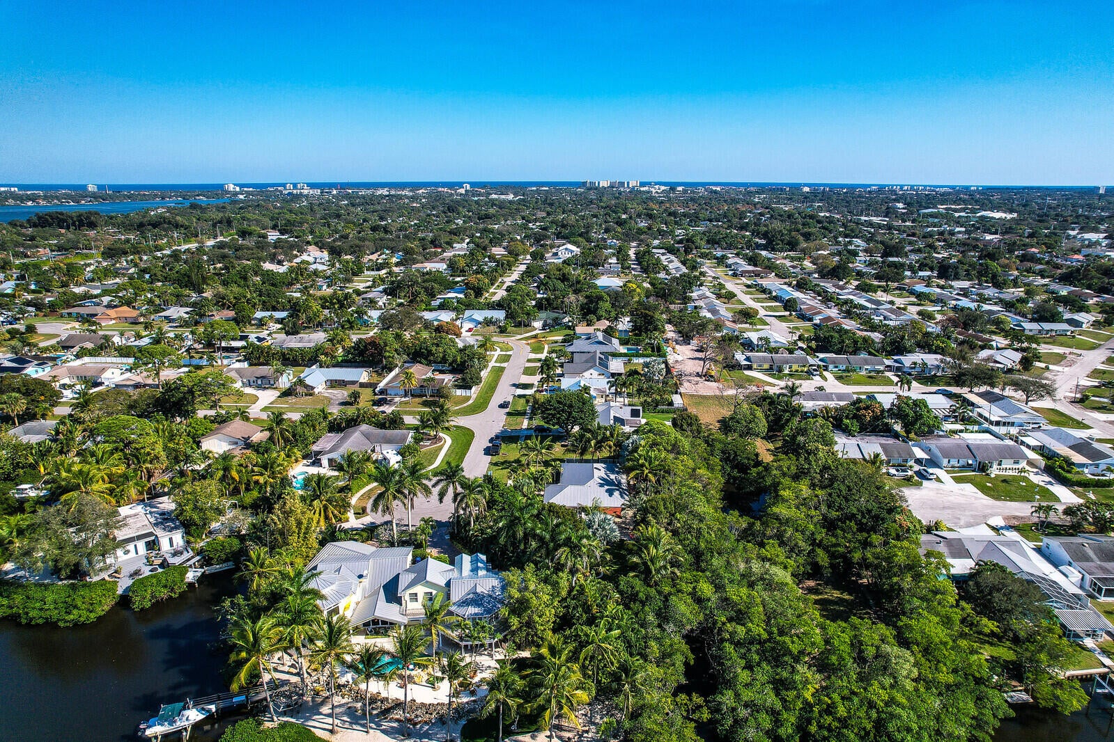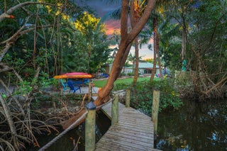 Tropical oasis with nearly 1/ 2 an acre on a cul-de-sac and no HOA in the heart of Jupiter! Bring your boat, kayaks, and paddleboards for waterfront access with a dock on Jones Creek that offers ocean access to the Jupiter Inlet! Mature exotic palms, lush mangroves, and diverse array of plants surround the outdoor area creating a peaceful resort style feel. Inside the home offers an updated kitchen with custom cabinets and granite countertops that open to a large area that's great for entertaining. Three stacked bedrooms and 2 1/2 nicely updated bathrooms complete the interior. Additional highlights include an oversized 2-car garage, metal roof, a large outdoor deck, and full hurricane protection with partial impact glass. A truly unique property offering the ultimate Florida lifestyle!