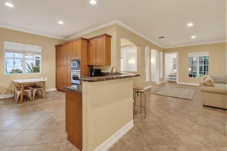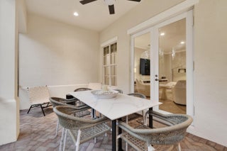 Beautifully maintained and upgraded, this ground level Monaco coach home in the gated community of Frenchman's Reserve offers spacious, comfortable, and private single-level living. Featuring 2 bedrooms plus a den with two twin beds, 2 full baths, and a powder room, the residence lives large with over 2400 sq ft of interior space and an attached 2-car garage.The oversized great room is bright and inviting, with generous seating space and direct access to the covered patio for quiet outdoor enjoyment. The large kitchen features extensive cabinetry, granite countertops, stainless steel appliances, double ovens, and a casual dining area surrounded by lush landscaping. Tile floors throughout the main living areas, crown molding, custom storage, and impact windows and doors add quality and convenience. The primary suite offers a spacious custom closet system and a well-appointed bath with separate vanities, soaking tub, and walk-in shower. Additional highlights include a full laundry room with cabinetry, a screened and covered lanai for year-round use, and a very private backyard setting framed by mature landscaping. Located near the community pool and within one of Palm Beach Gardens' premier country club communities, this residence offers an ideal lock-and-go lifestyle. Tenant may assume a Social Membership at Frenchman's Reserve Country Club for a $535 transfer fee, giving access to dining, spa and fitness facilities, tennis, swimming, and world-class club amenities in a beautifully maintained Arnold Palmer-designed community.