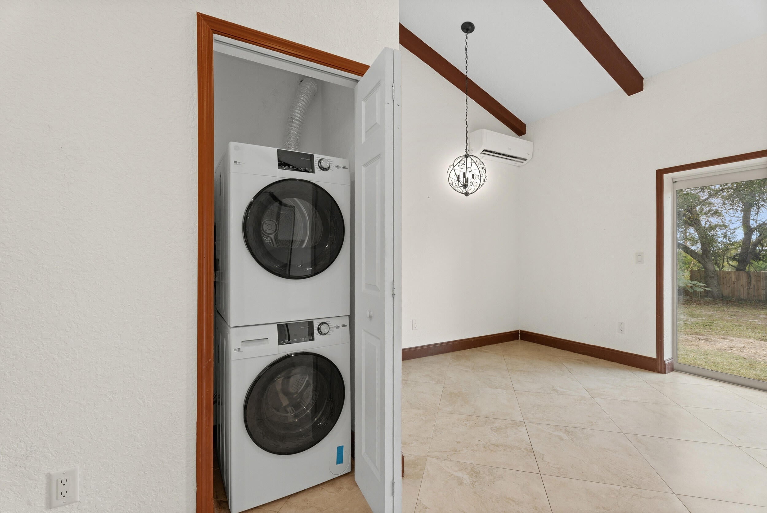 Step into a piece of history with this charming former schoolhouse with original Dade Country pine flooring, now beautifully transformed into a unique residence with all the modern comforts. Situated on a double lot this home is nestled near the Indian River and the Savannahs, right next to a cul-de-sac. The home features a newly built efficiency mother-in-law suite added in 2016, complete with ceramic tile flooring and impact glass sliders, and a breezeway connecting it to the main house. The main kitchen boast a 2021 custom renovation, including new appliances and a reverse osmosis water filtration system. Outside, you'll love the fenced side yard that's great for pets, and there's room to add a pool if you wish. This is a must-see gem!