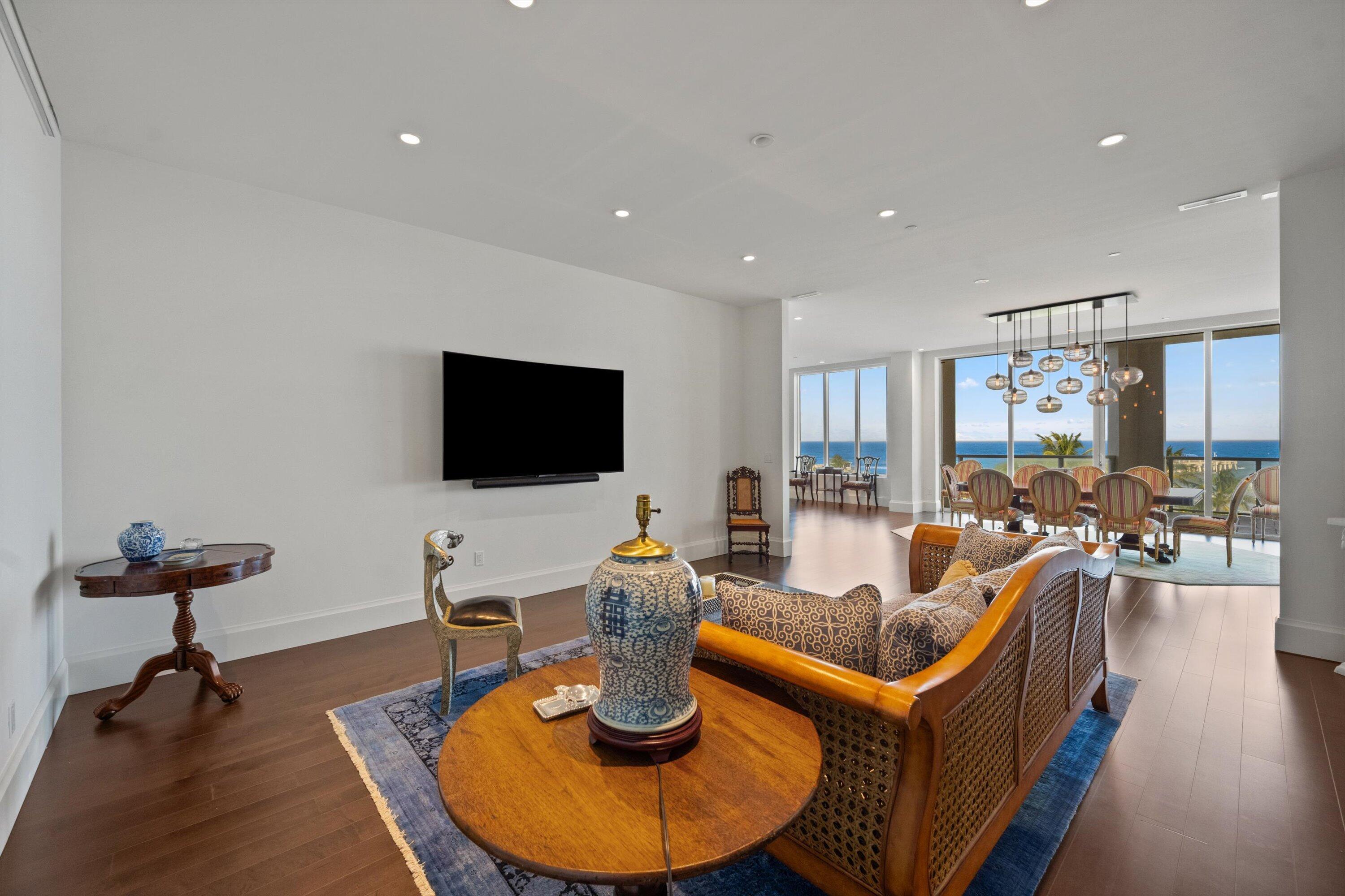 Stunning contemporary double oceanfront residence offering over 8,800 total square feet and sweeping, unobstructed ocean views, this exceptional 5-bedroom, 6 full and 2 half-bath condominium features expansive oceanfront terraces ideal for indoor-outdoor living. A rare double-unit layout includes a private library, media room, gourmet kitchen, and five dedicated parking spaces, all within a premier full-service building offering a pool, spas, state-of-the-art fitness center, and full-time on-site management.