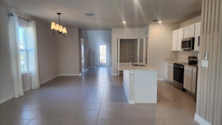 Never lived in and built in 2024, this beautifully finished two-story home is located in Lennar's desirable Bent Creek subdivision and was previously used exclusively as a model home.The first floor showcases a modern open-concept layout, seamlessly connecting the kitchen--complete with a center island--to the dining area and an inviting family room with direct patio access, ideal for everyday living and entertaining. A private owner's suite on the main level features an attached bathroom, offering convenience and privacy.Upstairs, a spacious loft provides flexible shared living space, while four secondary bedrooms offer comfortable retreats for family members or guests.