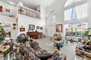 Step into a world of refined elegance in this stunning 5-bedroom, 3-bathroom two-story residence, perfectly designed to balance luxury with everyday comfort. The moment you enter, you are greeted by a spectacular living room featuring soaring volume ceilings that create an immediate sense of grandeur and airy openness. The flow of the home is effortless, moving from the formal spaces into a cozy family room and a kitchen boasting generous counter space--the ideal backdrop for culinary adventures and lively gatherings.Versatility defines the upper level, where a spacious loft offers endless possibilities as a media room, play area, or secondary lounge. The crown jewel of the home is the expansive primary suite, a true retreat featuring a private sitting area that serves perfectly as a reading nook, home office, or personal sanctuary for unwinding after a long day. With ample additional bedrooms, there is plenty of room for family and guests alike to relax in style and privacy. Practicality meets leisure in the final touches of this exceptional property. A rare 3-car garage provides abundant space for vehicles and storage, while the private backyard offers a secluded haven for outdoor entertaining or quiet reflection. Situated in a highly desirable neighborhood, the lifestyle extends beyond your doorstep with access to top-tier amenities, including a sparkling pool, playground, baseball field, and soccer field. This home is not just a residence; it is the setting for your best life.