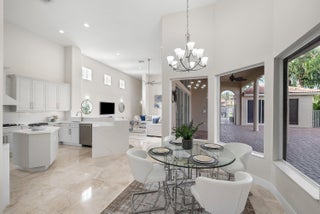 Elegant courtyard home offering serene lake views and exceptional privacy. This light-filled residence features an open floor plan with volume ceilings, crown molding, and beautiful architectural details including arched windows and doorways. Oversized windows frame expansive lake views, creating a seamless connection between indoor and outdoor living.The home offers four bedrooms and three-and-a-half bathrooms, with wood flooring in all bedrooms and polished marble throughout the main living areas. The gourmet kitchen is designed with quartz waterfall countertops, refinished custom wood cabinetry, stainless steel appliances, a natural gas cooktop, and a convenient breakfast bar. Solid 8-foot doors, and a private courtyard with a pool, perfect for relaxing or entertaining.Located in Crystal Bay within The Polo Club of Boca Raton, residents enjoy access to two championship golf courses, a premier tennis and pickleball center, a state-of-the-art fitness and spa facility, and multiple dining options. Schedule your private showing today.