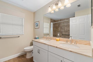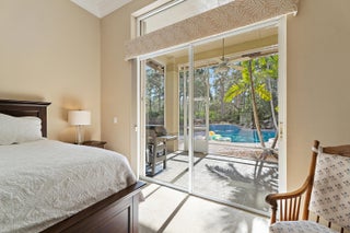 Prepare to be impressed! This spacious 5-bedroom, 3-bath, 3-car garage pool home is located on the largest lot in The Sanctuary at Hammock Creek, tucked away at the end of a cul-de-sac for a truly private setting. The homeowner, a professional landscape architect, thoughtfully designed the outdoor living space for family enjoyment, featuring an oversized freeform heated pool surrounded by lush tropical landscaping with serene views of the preserve and golf course. The home seamlessly blends indoor and outdoor living with numerous custom features throughout. Pride of ownership is evident in the meticulous maintenance and thoughtful upgrades, including a new concrete tile roof and accordion shutters (2020), kitchen remodel (2024), and fresh interior paint (2025). Showings begin January 6th