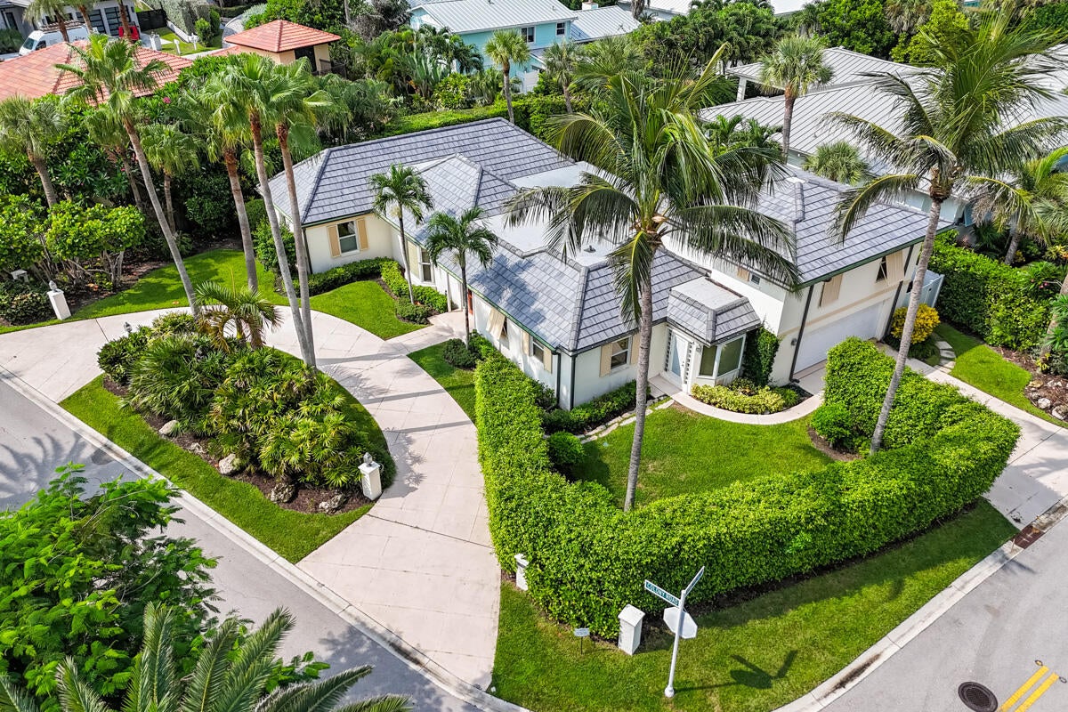 Charming Beachside Home in Jupiter Inlet Colony-Walk to the Ocean! Located on the southern tip of Jupiter Island, this beautifully maintained 4-bed, 3-bath residence offers the ultimate coastal lifestyle in this exclusive community. Nestled on a desirable corner lot, this home blends comfort, privacy, & elegance. Light-filled split floor plan includes a spacious living room, separate family room, formal & casual dining areas, & generous primary suite. Upstairs, a private 668 sq ft guest suite provides the perfect space for visitors, extended family, or a home office. Enjoy the best of Florida outdoor living with a private pool surrounded by lush landscaping & privacy hedges.Additional features include an air-conditioned 2-car garage & two separate driveways offering ample parking for residents & guests. Just a short walk to the private community beach access, this home presents a rare opportunity to own in one of South Florida's most prestigious seaside neighborhoods.