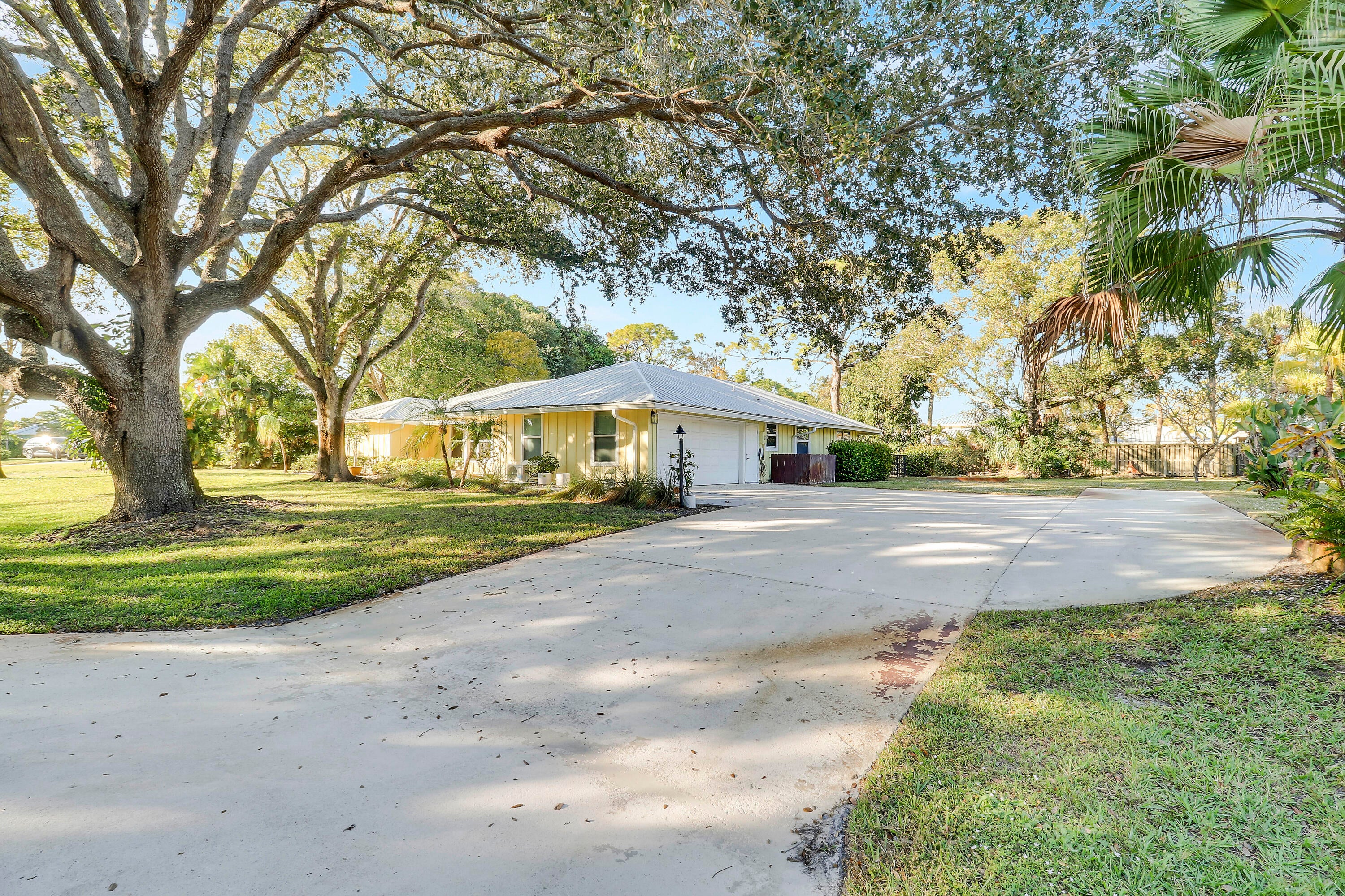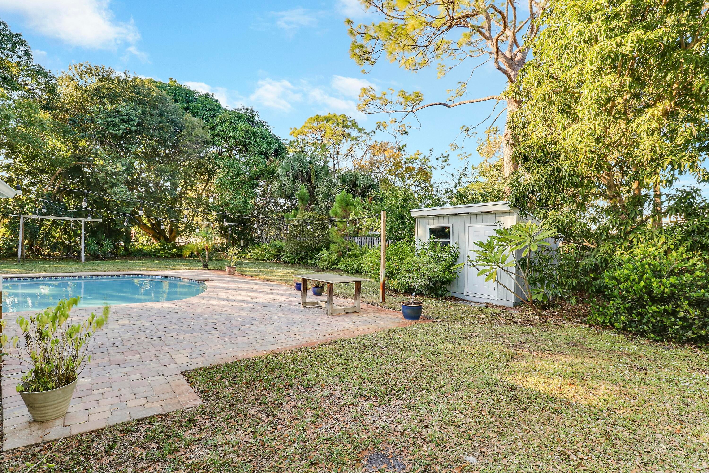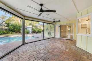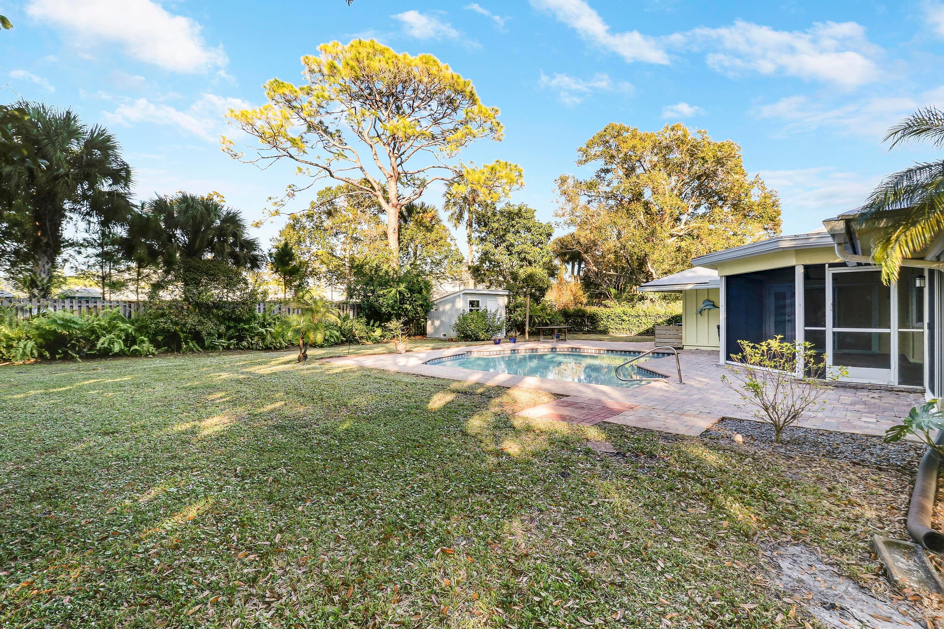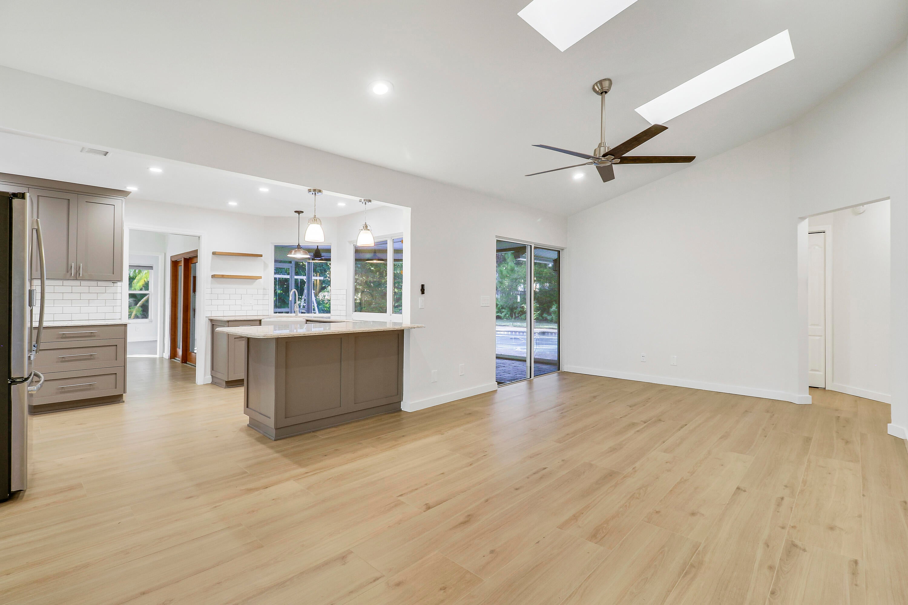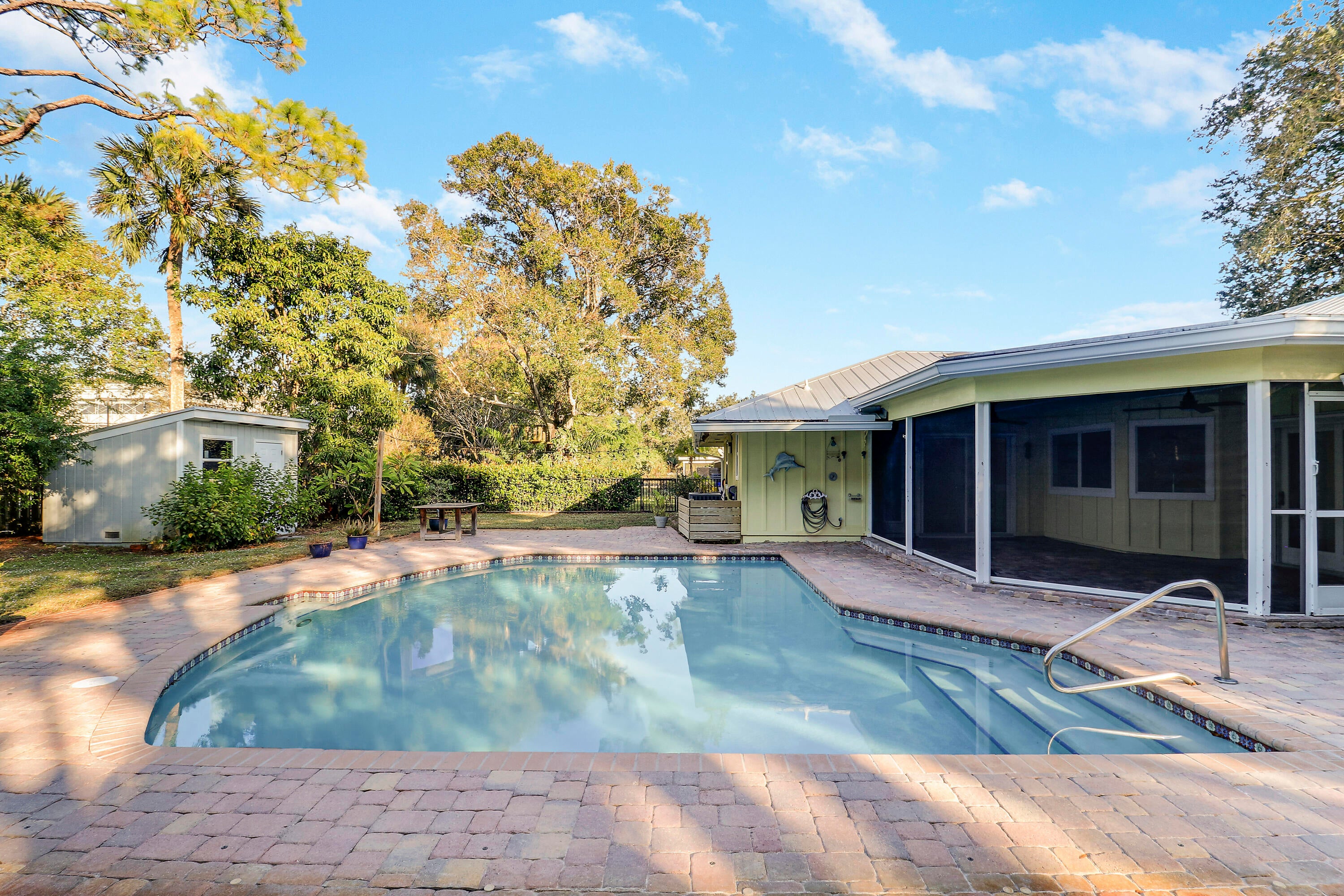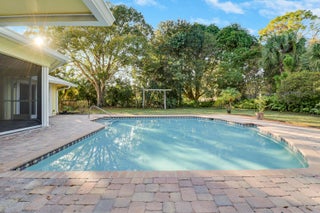 Rarely available 1/2 half acre fully fenced 3 bedroom 2 bath pool home in Set-N-Sun in Jupiter. HOA fees only $200 a YEAR!!! Features include a Metal Roof (2017), impact windows & doors throughout (except for 2 sets of sliders that have metal shutters). The kitchen has been updated with soft close upgraded cabinets, subway tile backsplash, stainless steel appliances including an induction oven, a farm sink, granite countertops, pendant lighting and a pass through window to the covered patio ideal for both indoor and outdoor living and entertaining. In 2024 wood look tile flooring installed in the majority of the home.The open floorplan has been recently painted includes a generously sized owners suite with impact sliders leading to the covered patio and pool, 2 closets (1 walk in), as well as an upgraded ensuite with dual sinks and a updated shower. In addition there are 2 additional bedrooms on the opposite side of the home, as well as a second updated bathroom plus a sunken living room, a dining room and family room. Additional features include vaulted ceilings, a shed, motorized retractable screens on back patio, automatic sprinkler system, a pool cleaner and the added benefit of no home behind. Boats, trucks & RV's are allowed in this low HOA neighborhood so bring the toys.