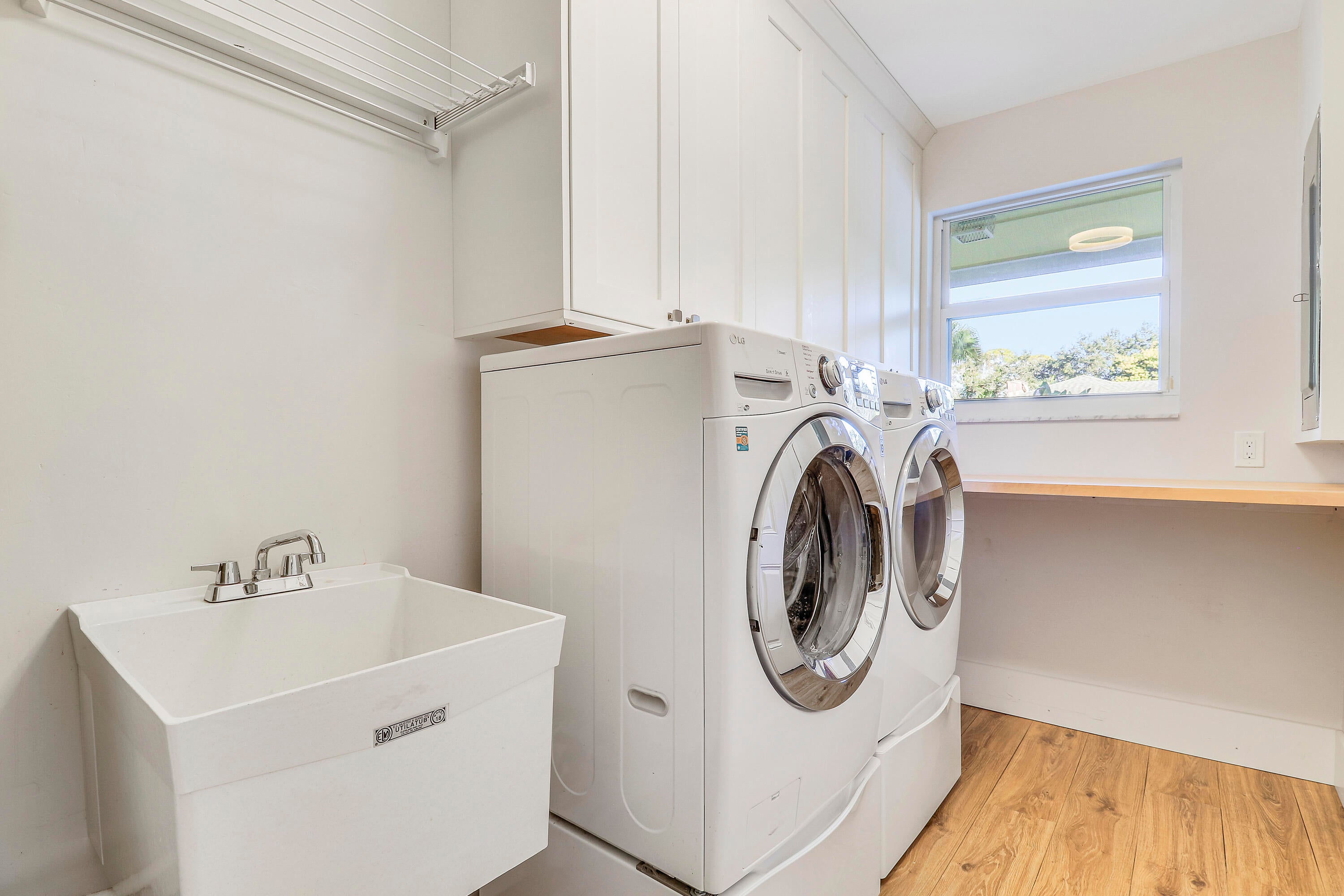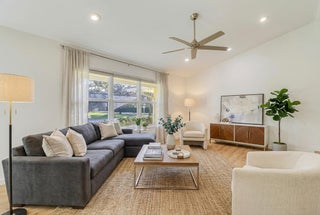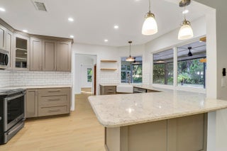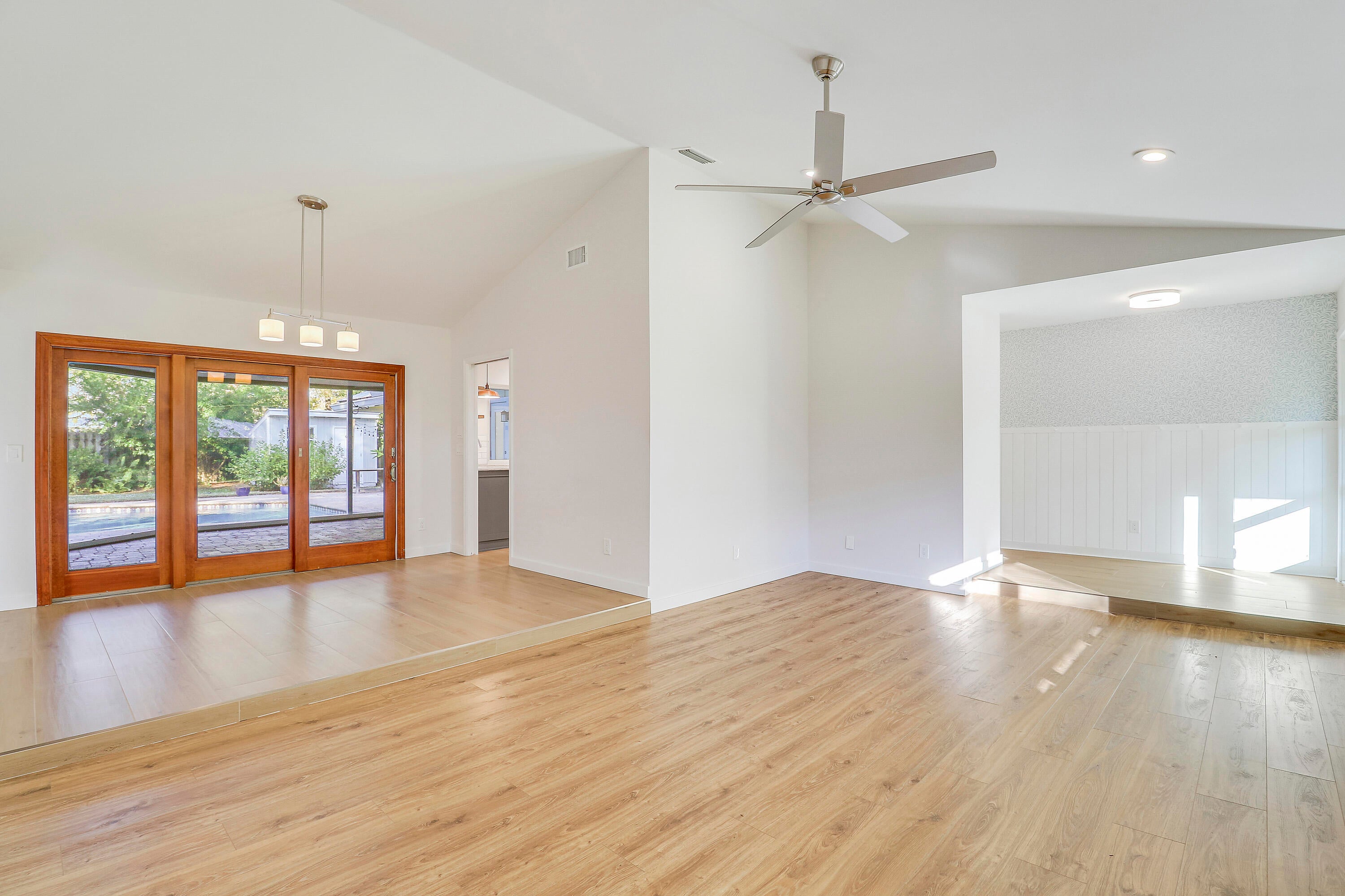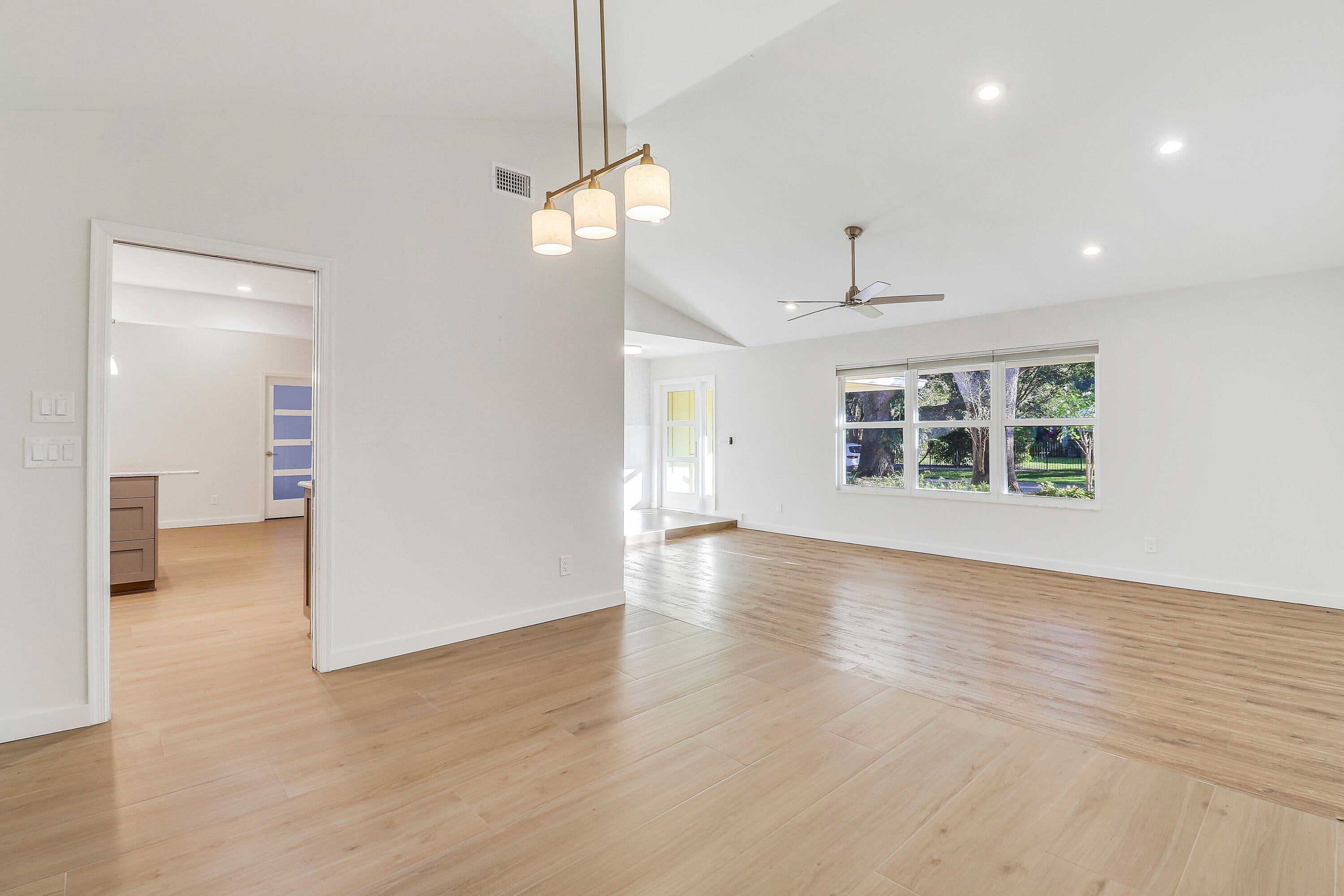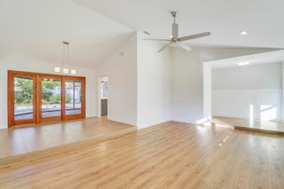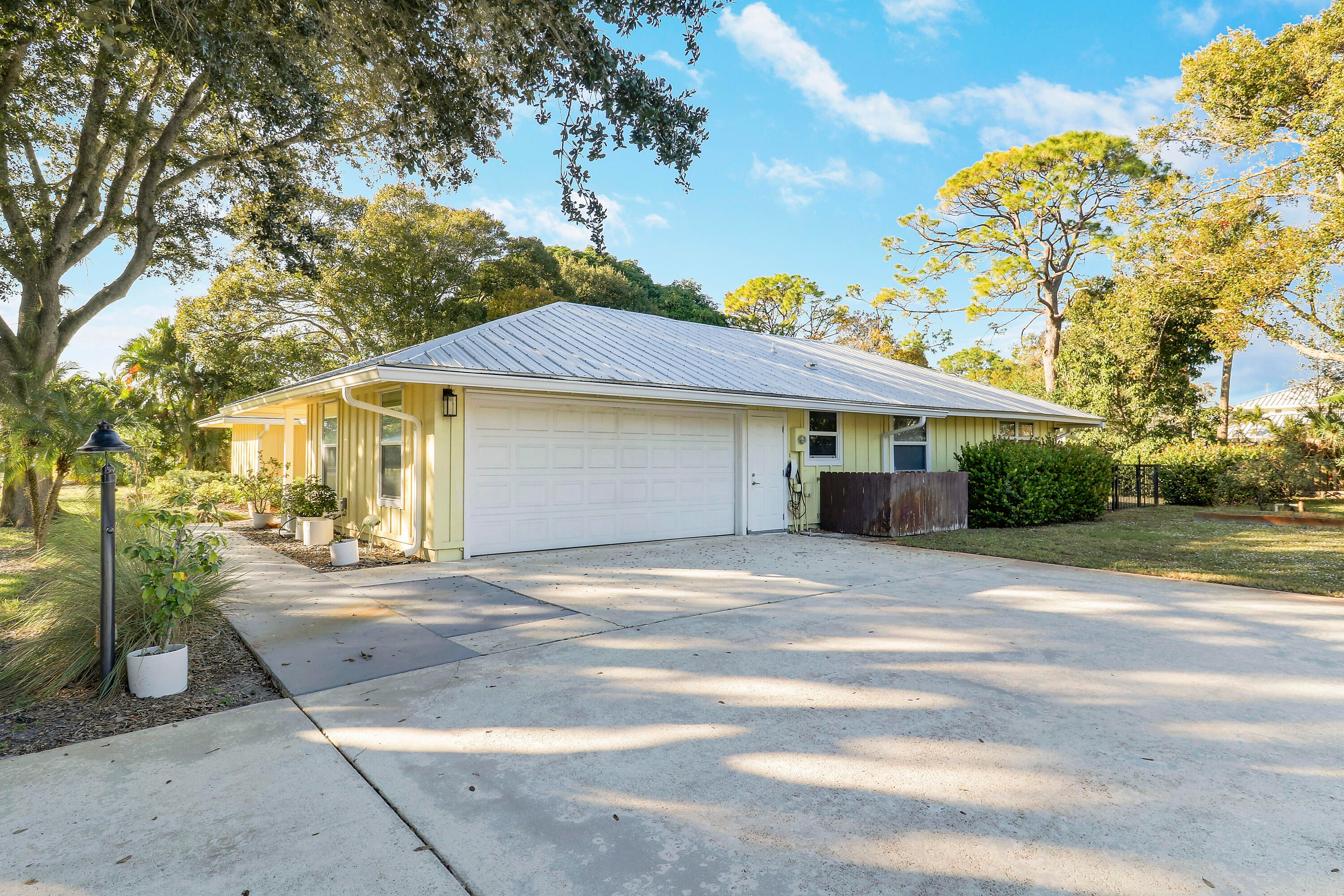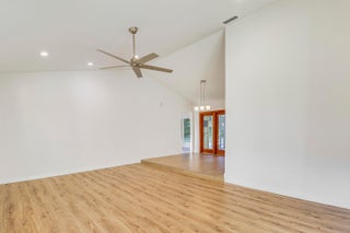 Rarely available 1/2 half acre fully fenced 3 bedroom 2 bath pool home in Set-N-Sun in Jupiter. HOA fees only $200 a YEAR!!! Features include a Metal Roof (2017), impact windows & doors throughout (except for 2 sets of sliders that have metal shutters). The kitchen has been updated with soft close upgraded cabinets, subway tile backsplash, stainless steel appliances including an induction oven, a farm sink, granite countertops, pendant lighting and a pass through window to the covered patio ideal for both indoor and outdoor living and entertaining. In 2024 wood look tile flooring installed in the majority of the home.The open floorplan has been recently painted includes a generously sized owners suite with impact sliders leading to the covered patio and pool, 2 closets (1 walk in), as well as an upgraded ensuite with dual sinks and a updated shower. In addition there are 2 additional bedrooms on the opposite side of the home, as well as a second updated bathroom plus a sunken living room, a dining room and family room. Additional features include vaulted ceilings, a shed, motorized retractable screens on back patio, automatic sprinkler system, a pool cleaner and the added benefit of no home behind. Boats, trucks & RV's are allowed in this low HOA neighborhood so bring the toys.