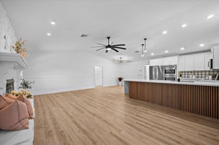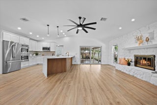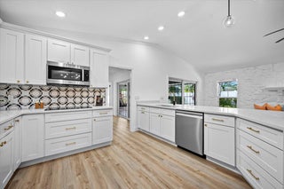 Welcome to this stunning 3-bedroom, 2-bath home with a 2-car garage, perfectly situated on a desirable corner lot in the heart of Jupiter, Florida. This home truly has it all, featuring a beautifully updated kitchen with white shaker cabinets, quartz countertops, a designer marble backsplash, and premium Bosch appliances. Wide-plank luxury vinyl wood flooring flows throughout, creating a seamless and modern feel. Both bathrooms have been thoughtfully renovated with high-end finishes and the finest details. Enjoy cozy evenings by the wood-burning fireplace or relax and entertain on the expansive patio. Located just minutes from Jupiter's best restaurants, shopping, the beach, and the Intracoastal. NO HOA--bring your boat, your toys, and embrace the ultimate Jupiter lifestyle.