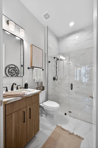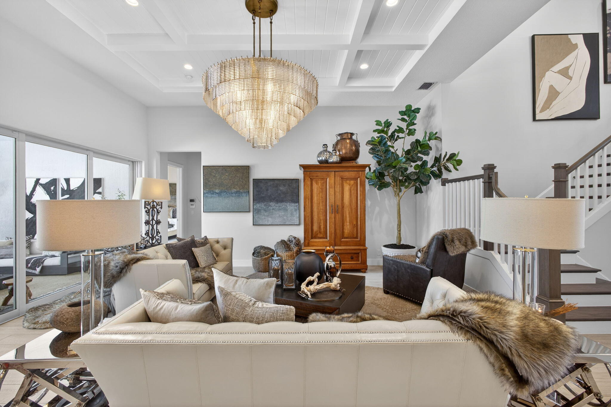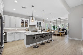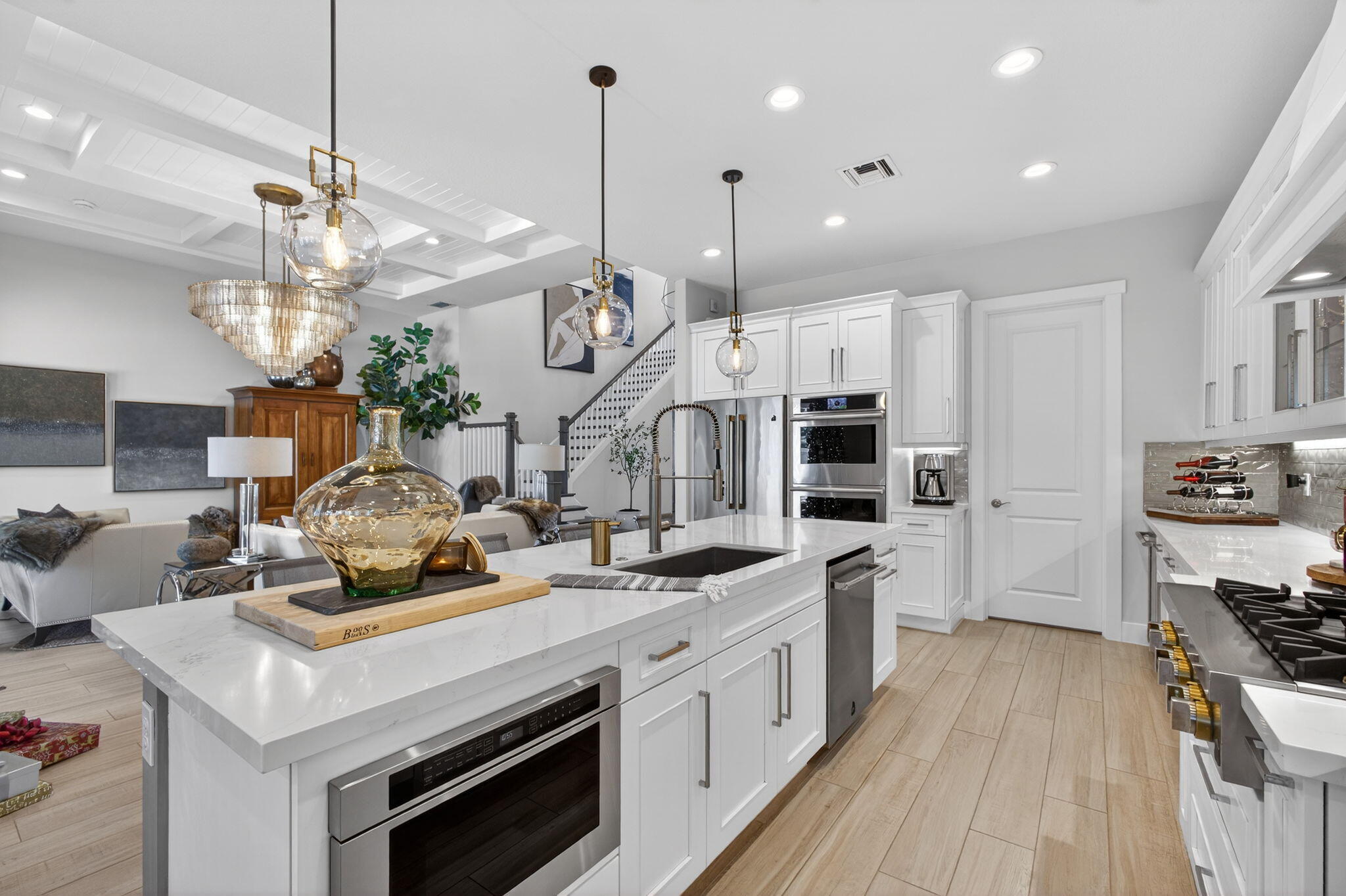 Sophistication and elegance are showcased throughout this stunning yet welcoming home, featuring designer lighting and fixtures, plantation shutters, a customized primary closet, upgraded shelving and shower door, and custom garage decor. These thoughtful post-closing enhancements add both luxury and functionality. The first floor offers a spacious primary and guest suites, powder room, dedicated office, and laundry room. The chef's kitchen is equipped with JennAir appliances, wood cabinetry, a walk-in pantry, wine cellar, and upgraded fixtures. The open concept living space seamlessly connects to the expansive veranda, ideal for gatherings & friends. Lush, upgraded landscaping adds privacy to the outdoor settings so you can enjoy your heated pool and spa year round.Residents of the Watermark subdivision within the AVENIR master-planned community enjoy resort-style amenities, including a fitness room, game room, ballroom, kids' playroom, heated resort and lap pools, spa, cabanas, tennis and pickleball courts, playground, and a kids' water park. Surrounded by green spaces and miles of walking and biking trails, the community is conveniently located near shopping, schools, golf courses, dining, entertainment, cultural events, and world-class beaches. This is a rare opportunity to embrace a lifestyle of luxury, comfort, convenience, and exceptional community living. Visit and experience it for yourself.