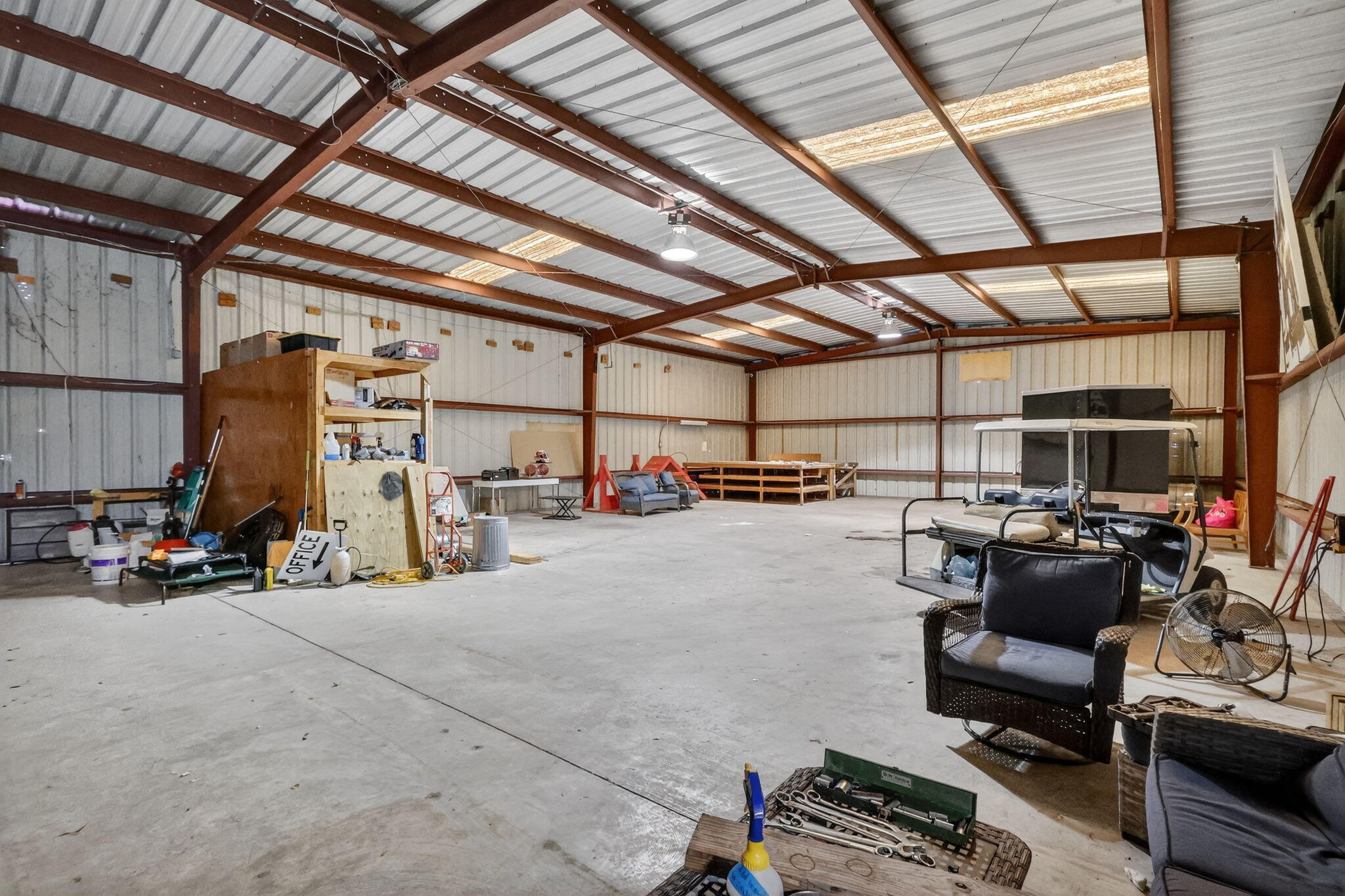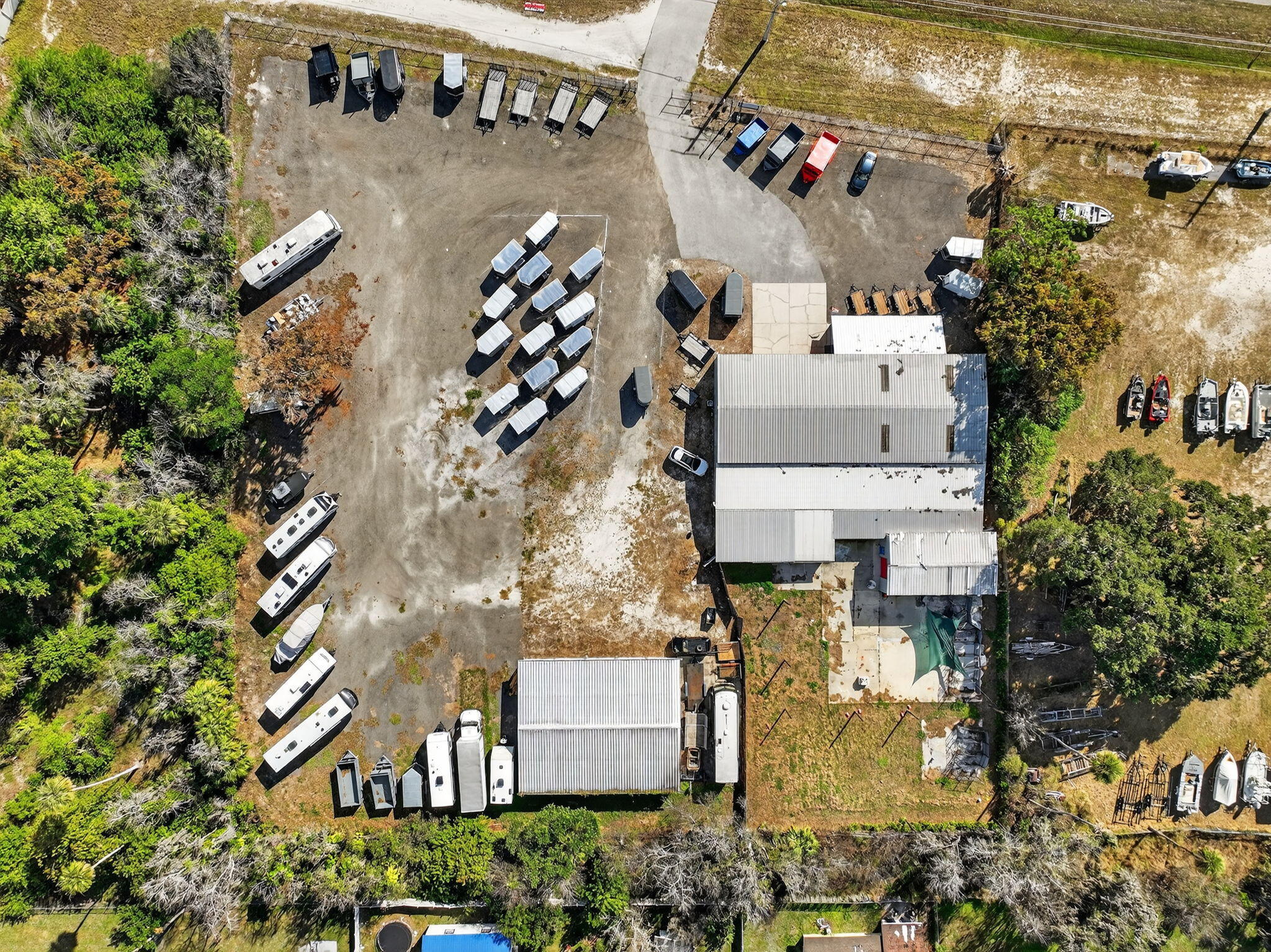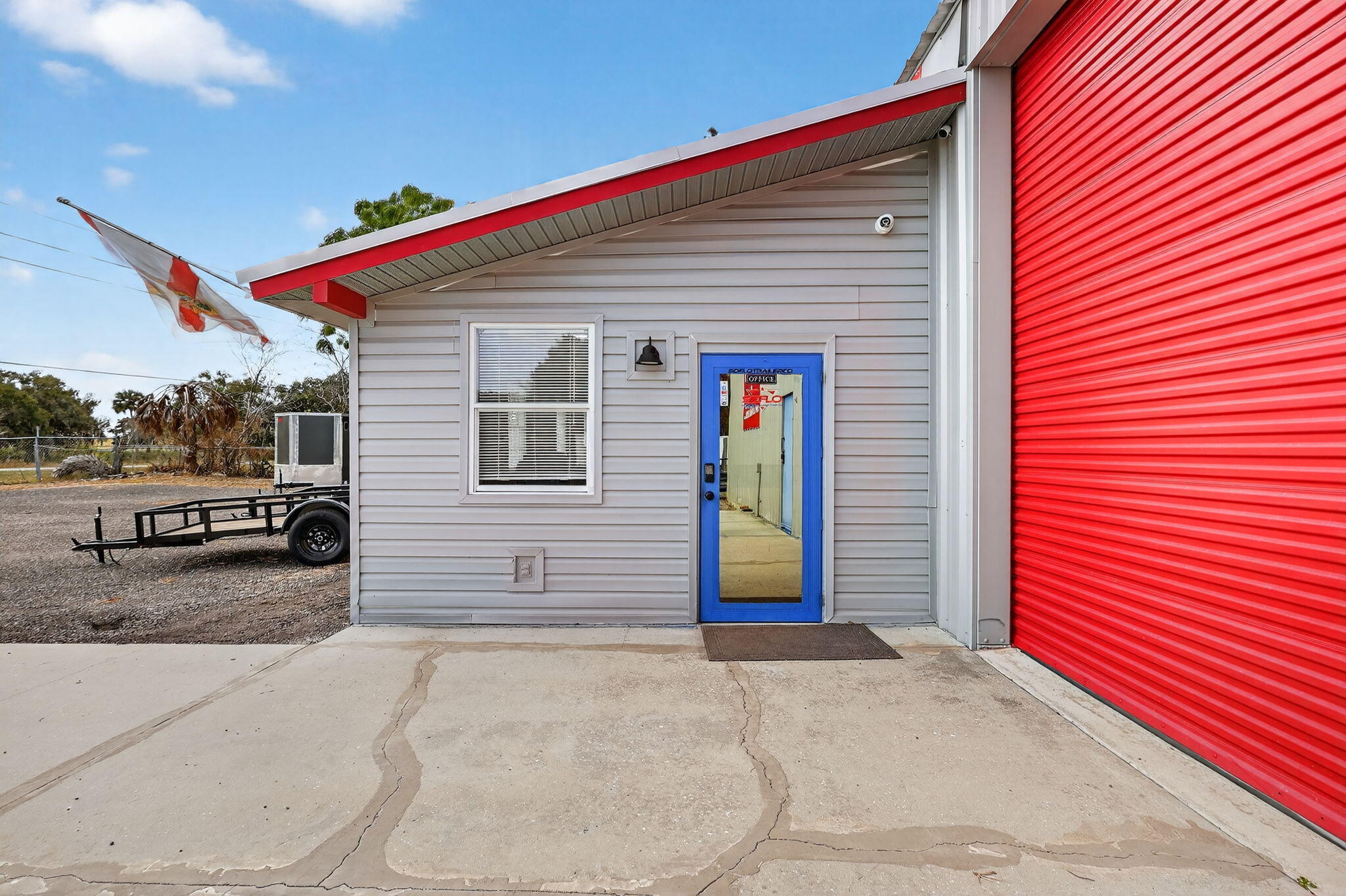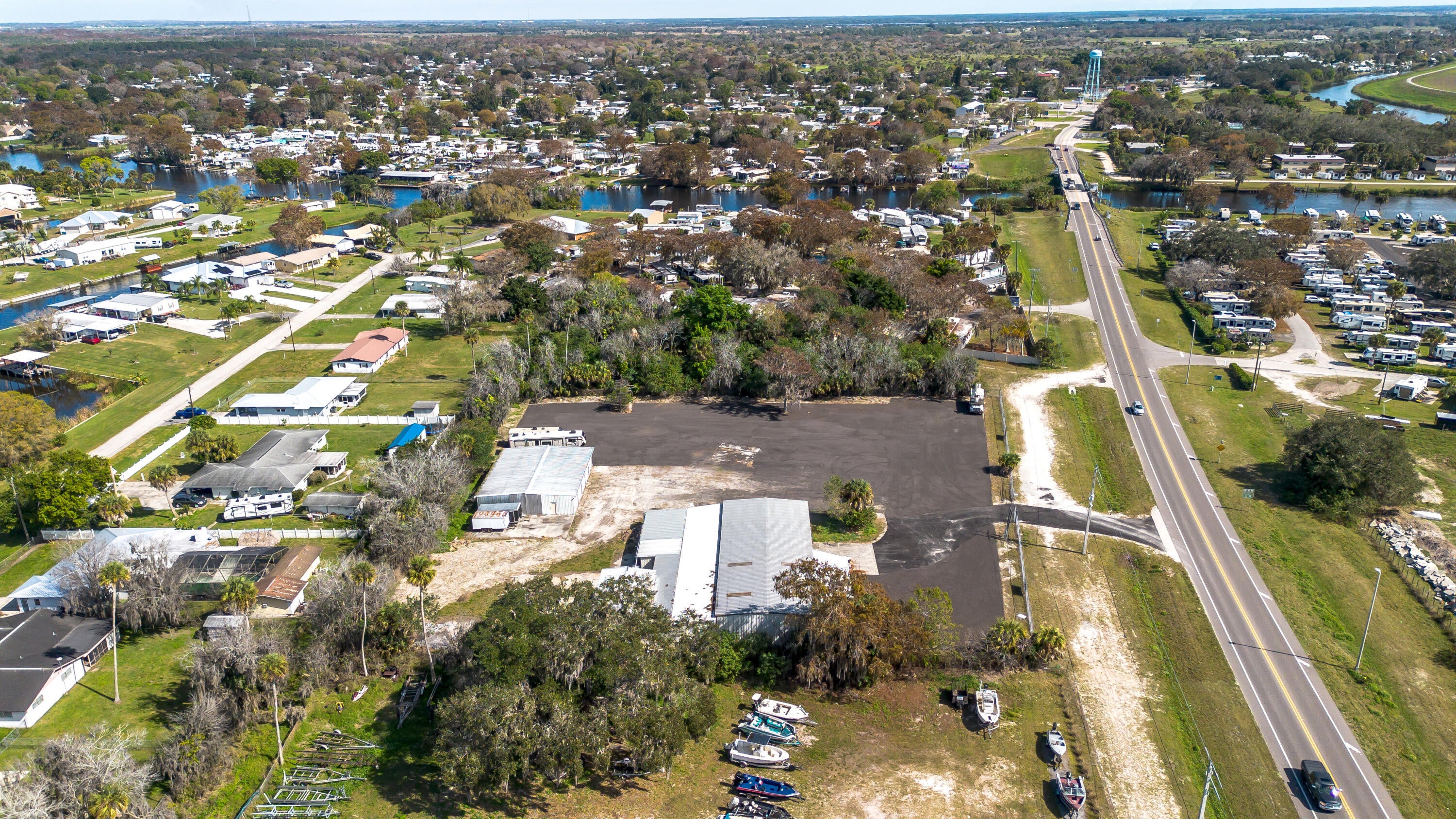 Over 2 acres of commercial property located in Okeechobee, FL with prime frontage along high-traffic US-441. The property is zoned for Vehicle Sales & Repair, allowing a wide range of permitted uses including automotive, marine, RV, trailer, motorcycle, & equipment sales, service, & storage.Improvements include multiple warehouse buildings totaling over 11K sq ft, featuring overhead doors, high ceilings with ample vertical clearance, office space, restrooms, garage areas, and flexible interior layouts suitable for various commercial operations. The expansive site offers ample parking, outdoor storage, vehicle display, and room for future expansion.The property is currently used as a trailer dealership with boat & RV storage. Completely fenced & gated with top notch security system