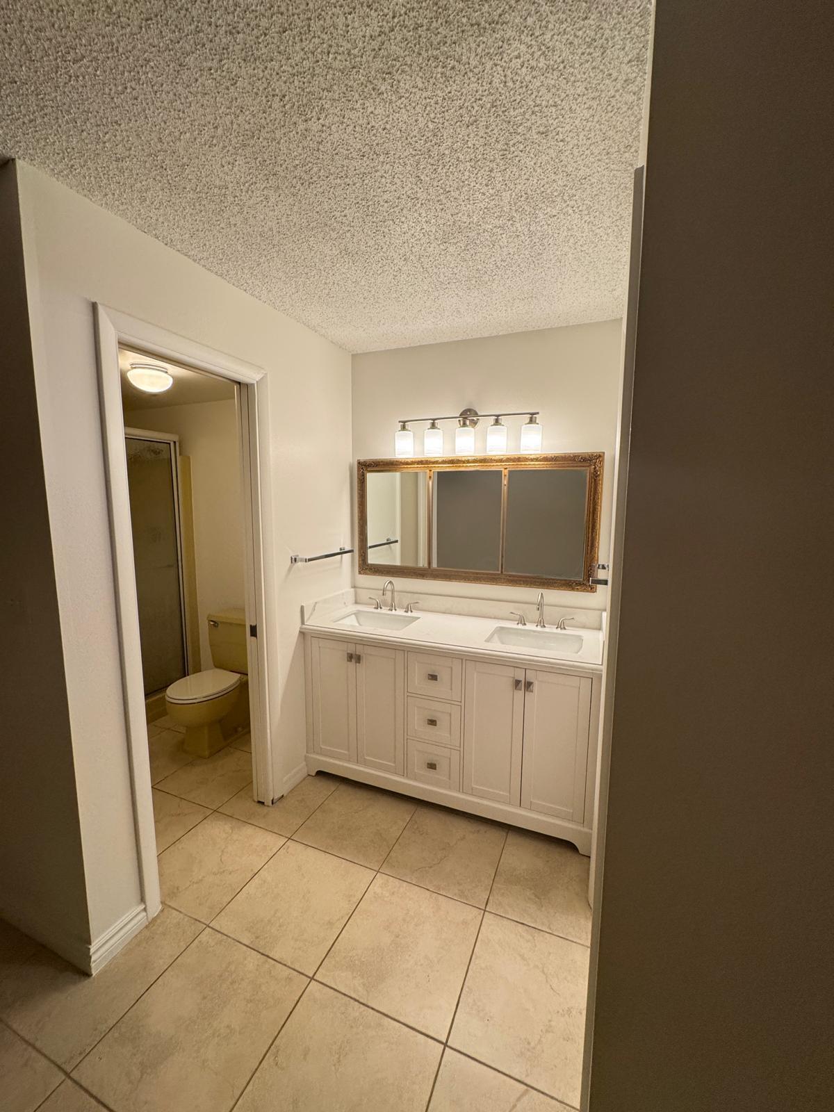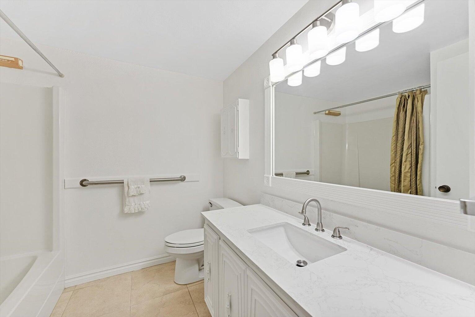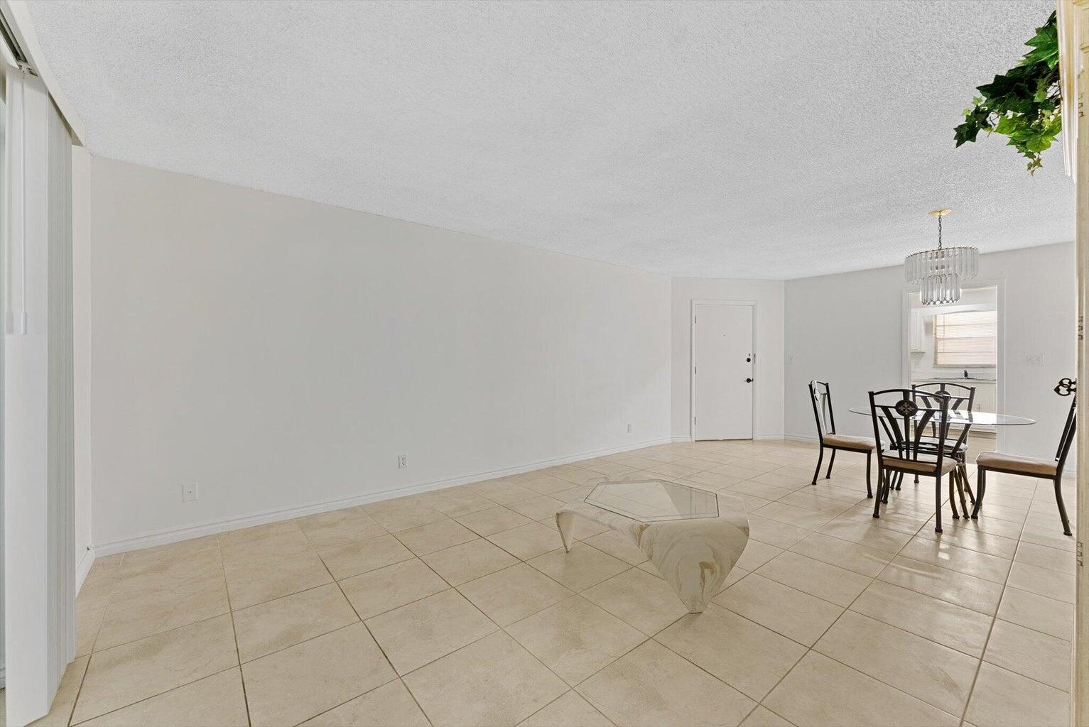 Perfectly sized 2-bed, 2-bath first-floor condo in Palm Beach Gardens featuring a NEW roof (2024), tile flooring throughout, fresh paint, and a spacious kitchen with new recessed lighting. Open living and dining areas, full-size washer/dryer in unit, new quartz vanity tops in both baths, and an enclosed patio. Centrally located near shopping, dining, beaches, highways, and PBI Airport. Community amenities include pool, clubhouse, laundry, and community rooms.