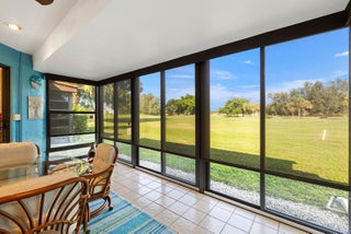 This beautiful, spacious villa offers tranquil views of the golf course & gardens. The home is bright & airy, featuring skylights & soaring ceilings that enhance the open feel. The recently remodeled kitchen boasts quartz countertops, premium cabinets, & top-tier appliances. Inside laundry room w/extra storage, plus 2 pantries & eat-in kitchen. Large primary suite provides access to huge covered patio.Primary bathroom has walk-in shower & soaking tub. 2nd bedroom features an en-suite bathroom. Upgrades include newer AC, fridge, washer/dryer, plus impact-resistant windows. The den could easily be converted to a 3rd bedroom. Located in a desirable, all-ages community, the villa is situated close to turnpike, shopping, beaches. Exterior walls, garage & front door will be painted 1st qtr 2026