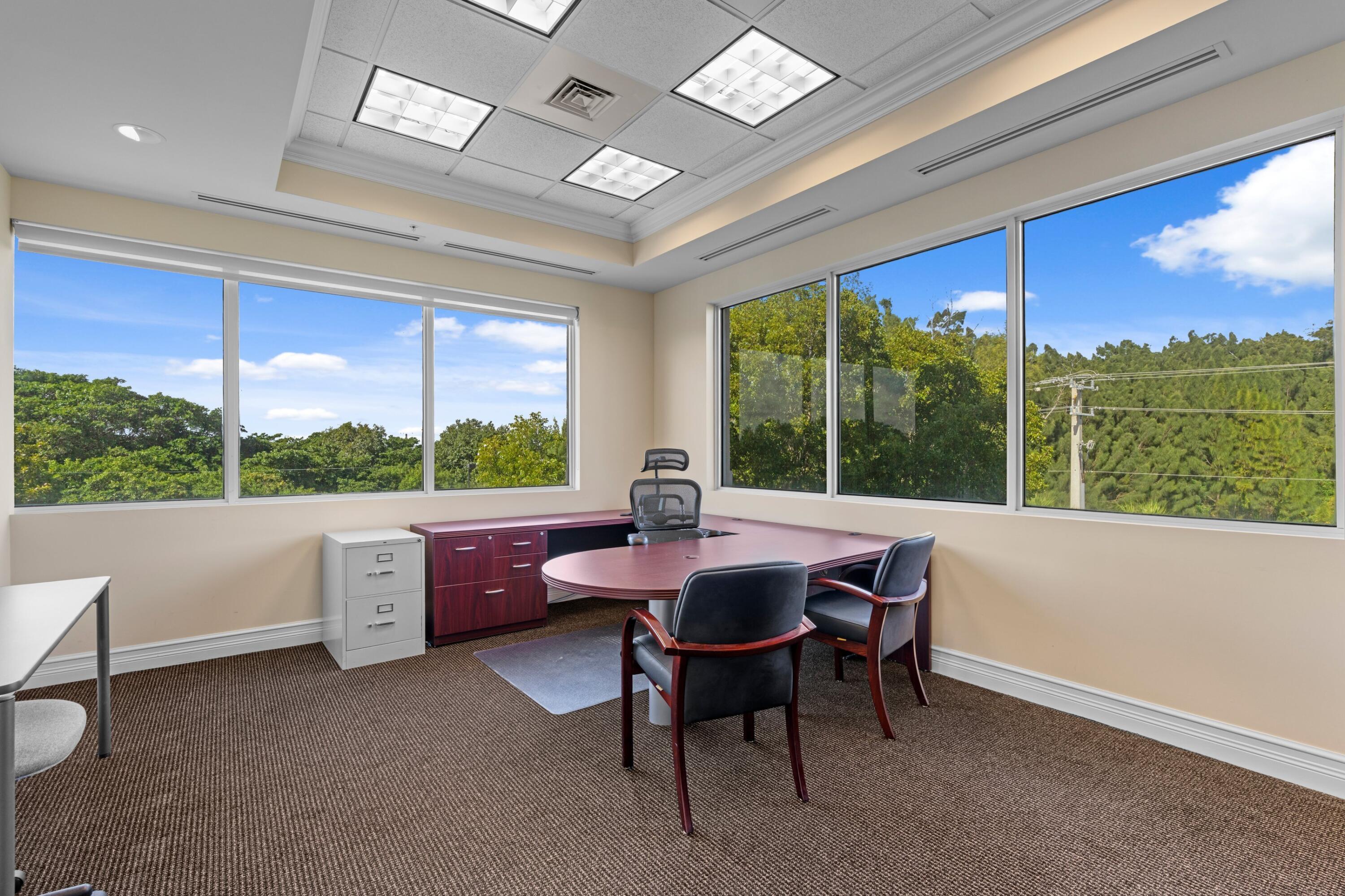 Exceptional opportunity for law, accounting, or professional firm to secure a functional andimpressive workspace for employees and visitors alike.Ideal location on Federal Highway in Boca Raton.Upgraded features include granite countertops, 10' ceilings, and lots of windows.Reception, conference, and library areas have custom built-in desks, shelving and cabinetry.Sink, microwave, and refrigerator in conference room for hosting visitors.Parking is wonderful! Two assigned covered parking spots included. Ample visitor parkingspots close to entry provide easy access.The entire 1,097 SF is usable office space as the restrooms are located in the building's commonareas meticulously maintained by onsite owner/property manager.Move-in ready. Immediate availability.
