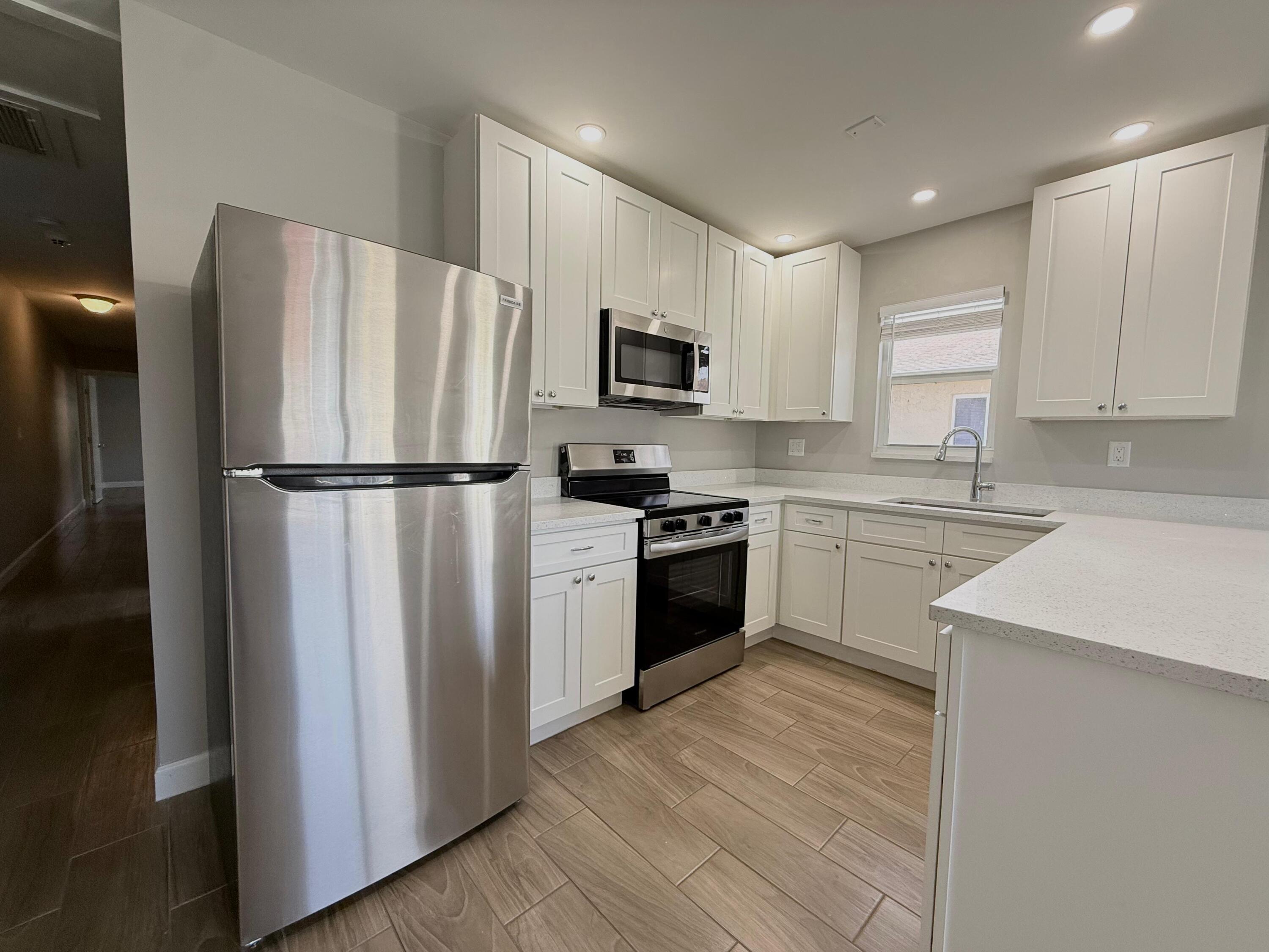 3 bedrooms, 1 bathroom, in unit washer/dryer, Completely renovated brand new interior, wide open floor plan, brand new kitchen w/ white shaker cabinets, plank tile wood-look flooring, new bathroom, private entry, easy and fast application process w/ immediate move in upon approval.