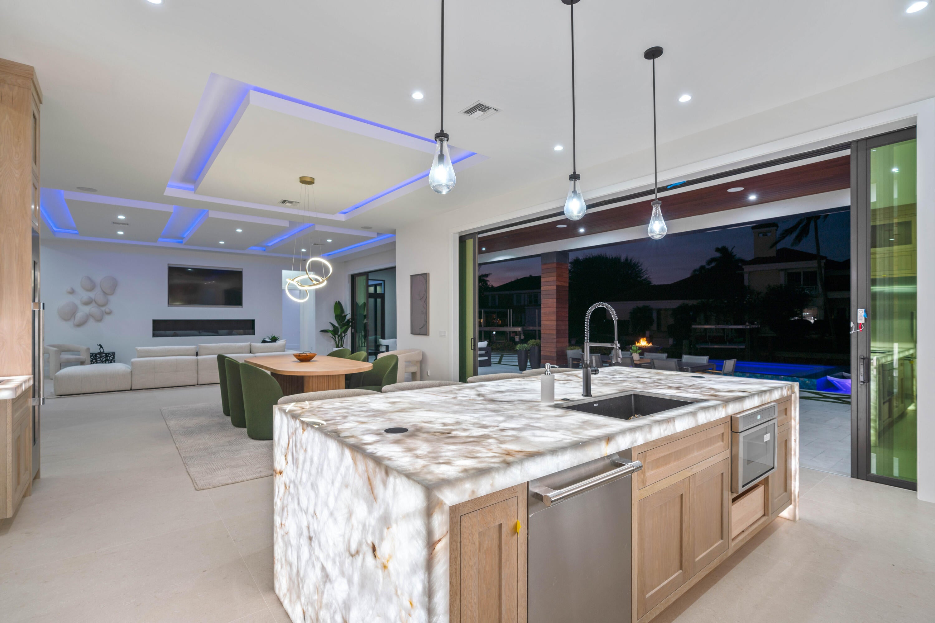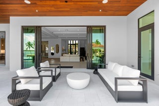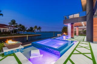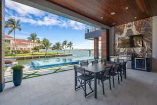 NEW 2024 WATERFRONT CONSTRUCTION AND BIG WATER VIEWS! Bring your largest vessels and dock directly behind this stunning estate home tucked away at the end of prestigious Bowsprit Drive in North Palm Beach. Situated on 150' of deep water with mooring piles and 24K lift! Meticulously engineered to capture wide water views from nearly every space with 90-degree sliding glass doors from the upper level primary suite to 10' tall 90-degree pocketing sliders in the lower level club room. Generously appointed and specifically designed with entertaining in mind, this home is the epitome of South Florida indoor-outdoor living with expansive covered patio and balcony areas, infinity-edge saltwater pool/spa and 60'' fire pit and conversation area, summer kitchen and smart home technology!