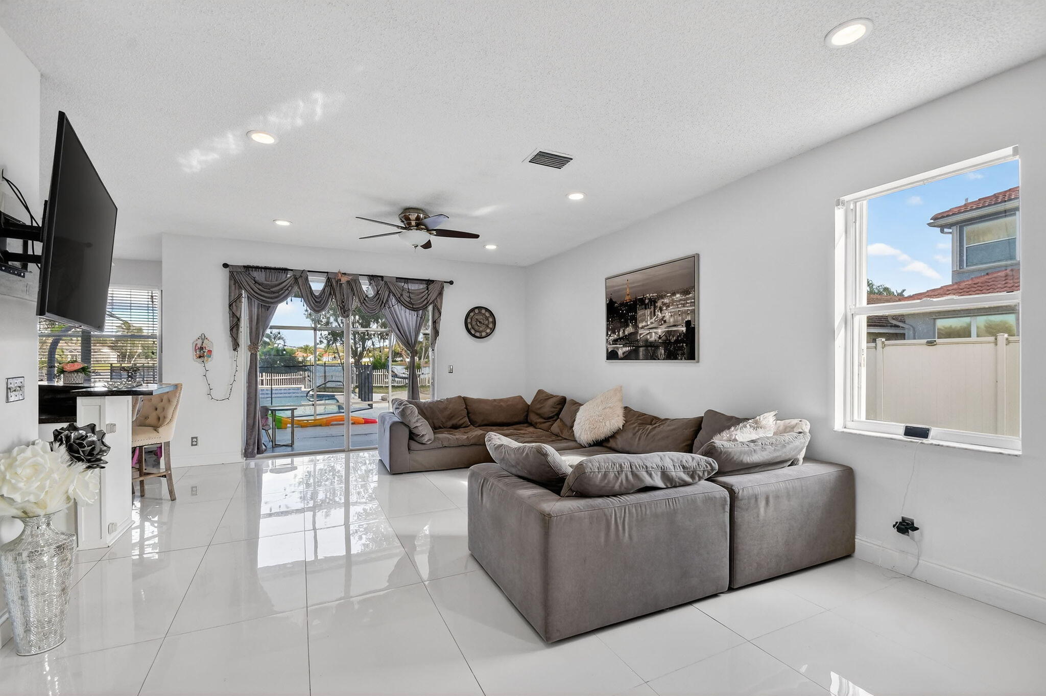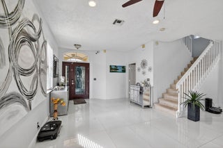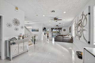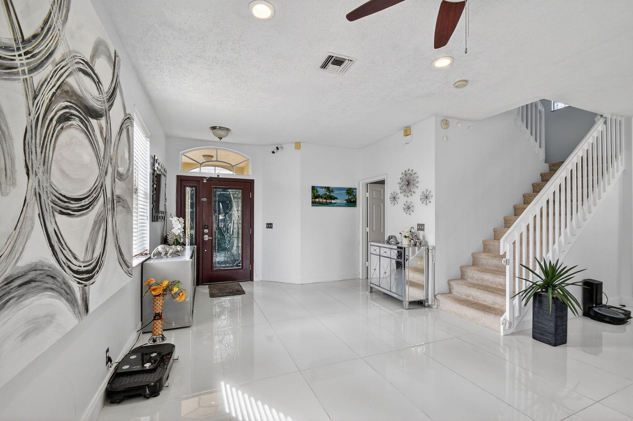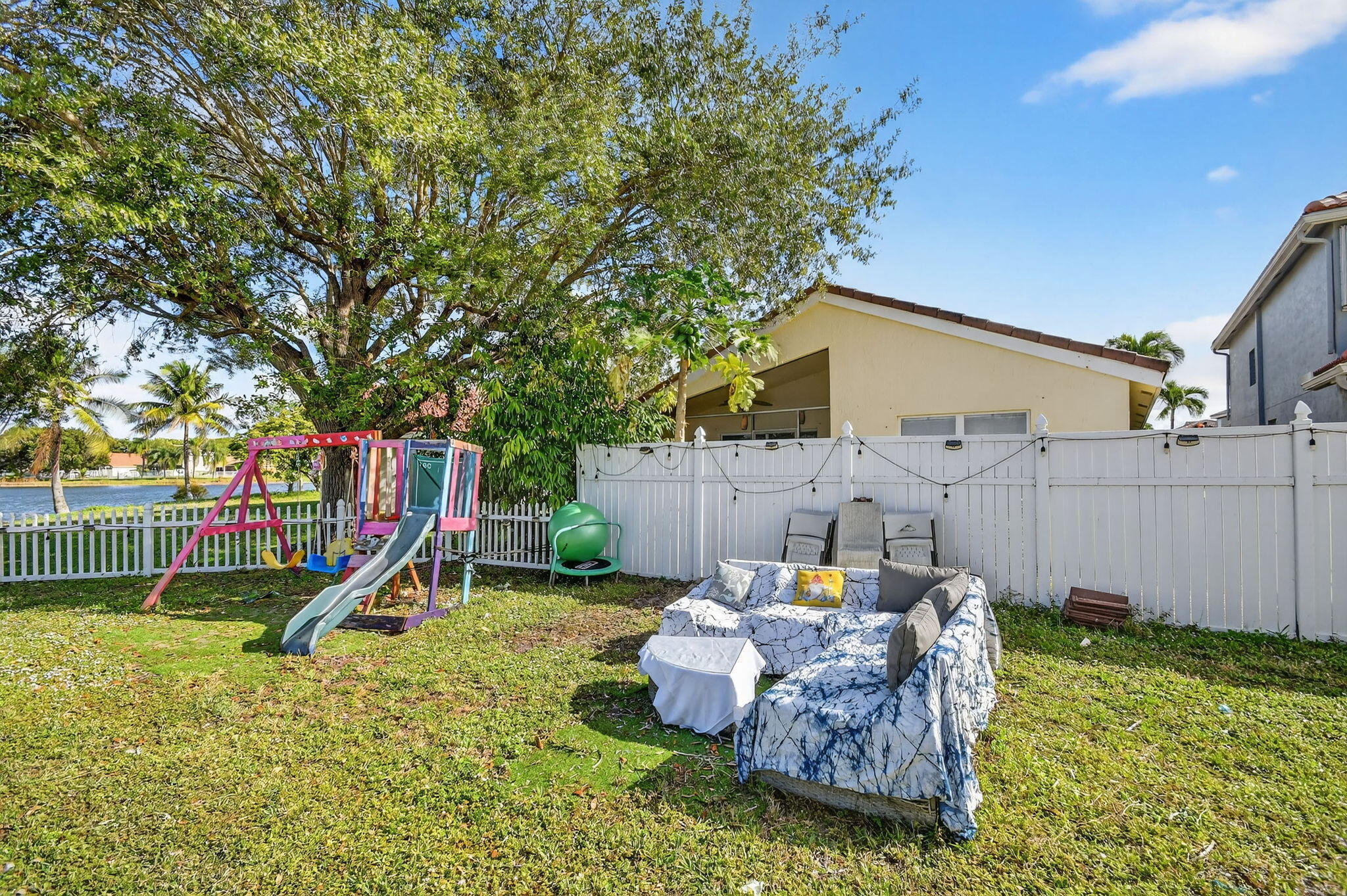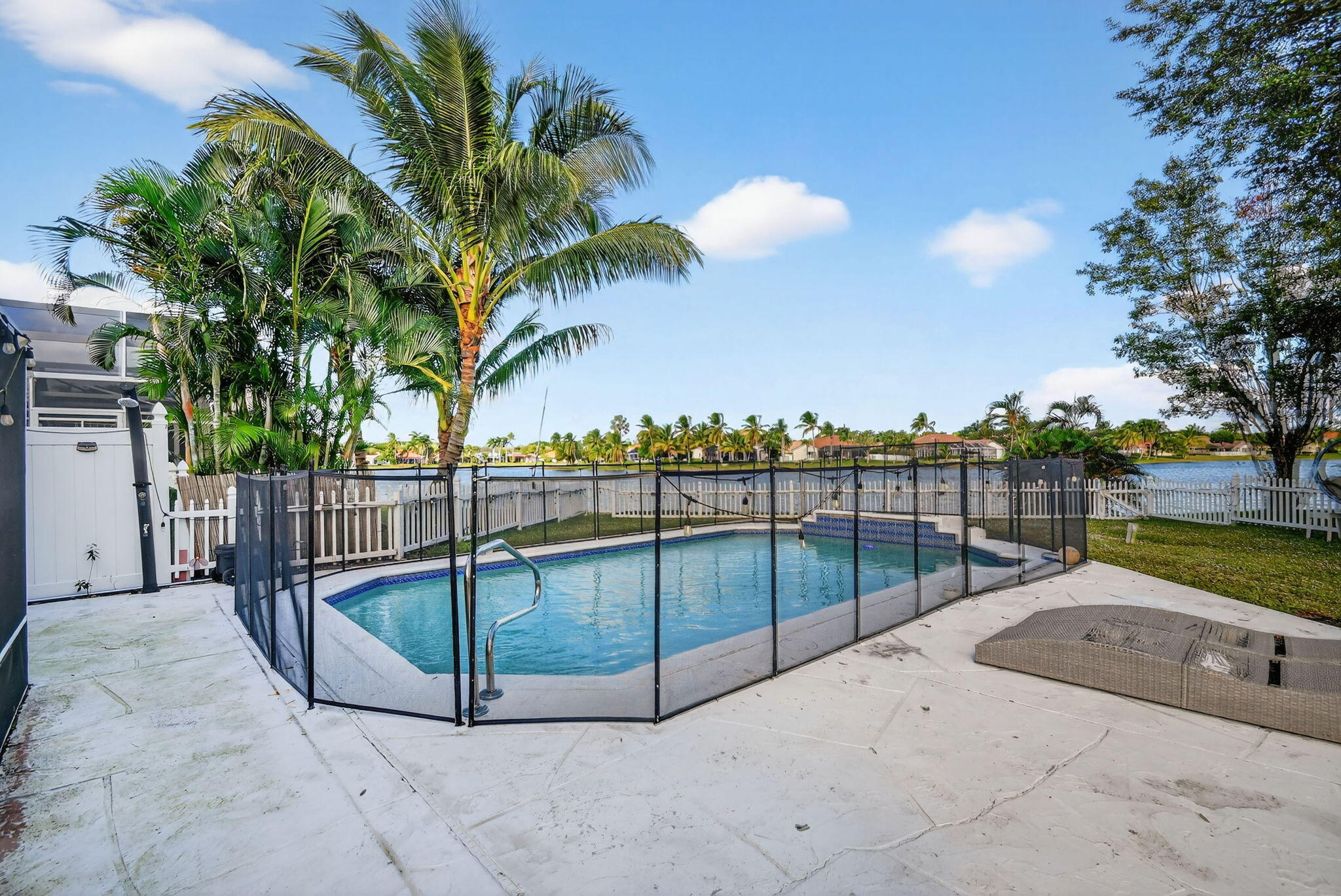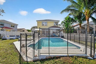 Beautiful lake views greet you upon entry to this renovated 4-bed,2.5-bath home featuring an open floor plan and elegant finishes. Situated on an oversized lot, the property includes a private pool and expansive fenced yard--ideal for play, entertaining, and everyday living. Freshly painted inside and out, the home is enhanced by 24x48 white marble tile flooring on the first floor, creating a bright and inviting living space. The spacious primary suite offers separate shower and soaking tub, along with a highly functional walk-in closet. Accordion hurricane shutters provide added storm protection. Located in a highly sought-after community with ball fields, playgrounds, clubhouse, and a large lake allowing non-motorized watercraft such as kayaks. All three nearby schools are A-rated