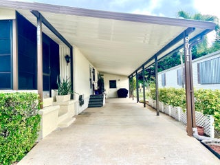 This well maintained home in the Cambridge community is open and spacious with an extremely comfortable, cozy feel! Set slightly higher on a larger lot, it is surrounded by mature landscaping. The additional lot space offers many opportunities. The extra long carport can easily fit up to 3 cars, and opens to the utility/storage room with plenty of additional storage space.Highlights include a metal roof, 2021 AC, 2025 water heater, 2022 washer and dryer, new wood laminate flooring and plywood installed in 2018, vapor barrier and strapping that is up to code, and a new water pump for the automatic sprinkler system installed in 2018. Cambridge is a well-maintained, active 55+ community, where you OWN THE LAND! This home is close to Hobe Sound beaches, shopping and restaurants,and next to the public Heritage Ridge golf course. Located in PHASE 1, you can have your BOAT or RV! AND, ALL pets are welcome!