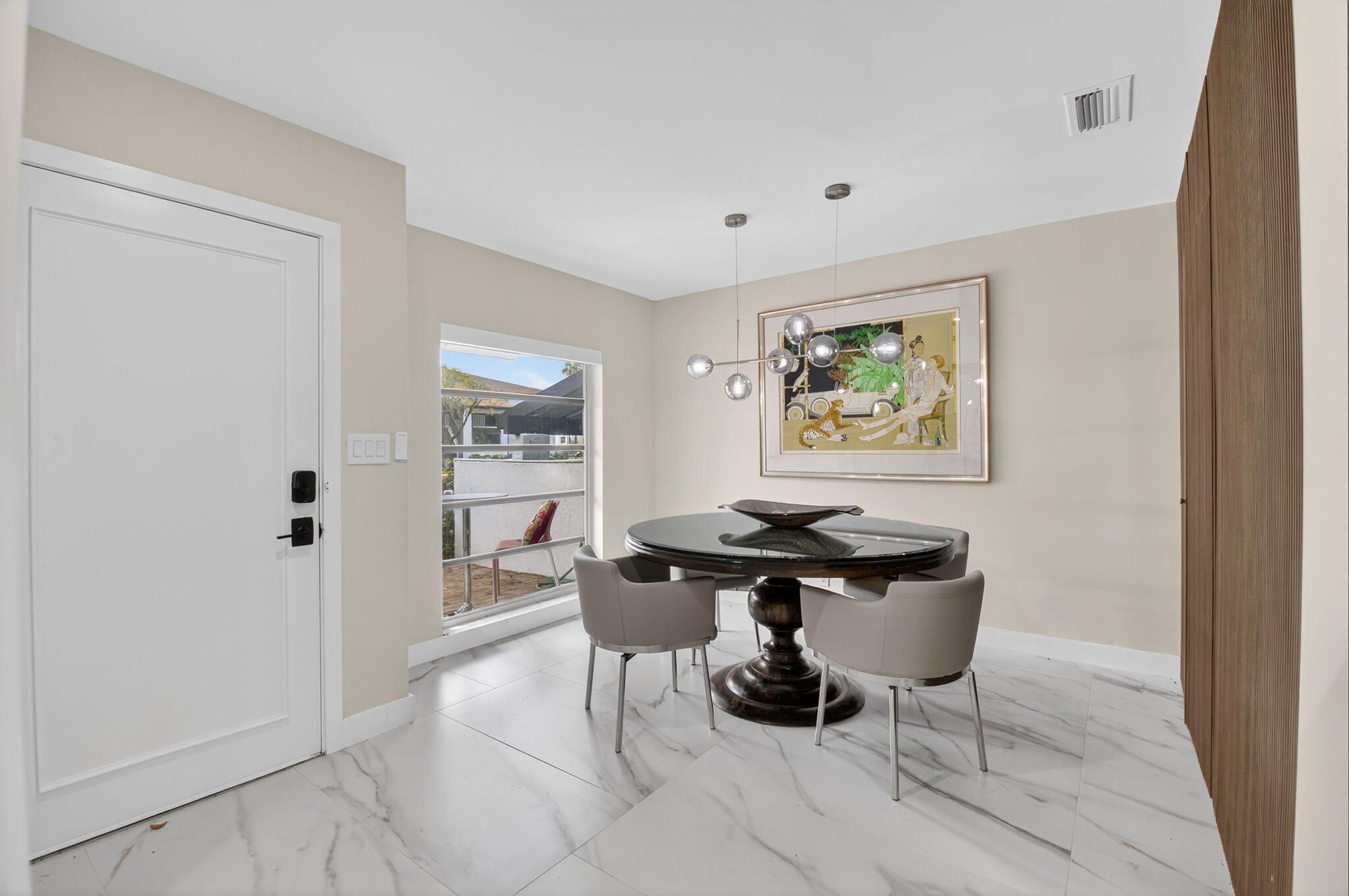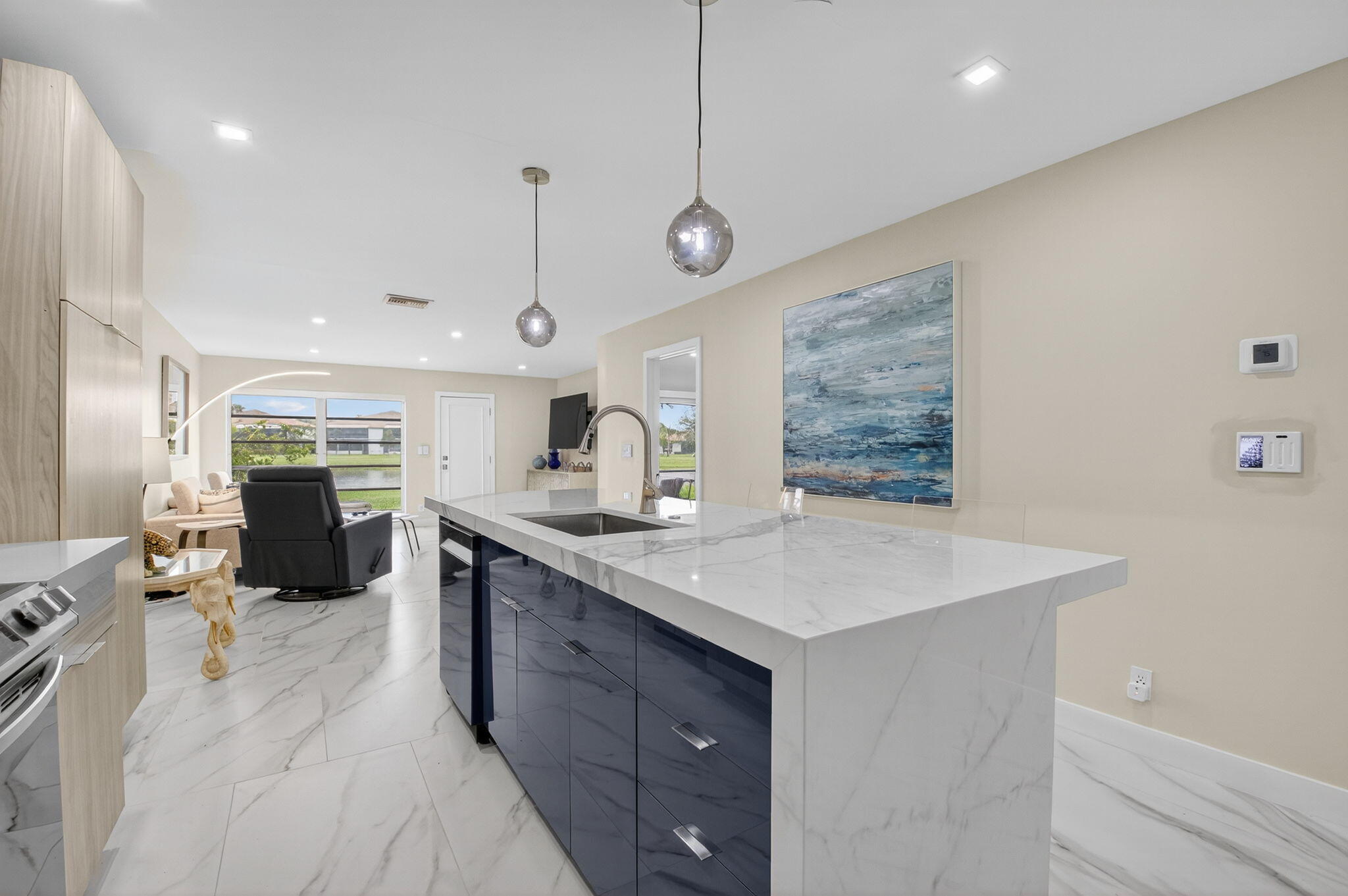 BIG PRICE CHANGE.Charming 2/2 first floor corner villa with no upstairs neighbors! This totally renovated home has an elegant but contemporary design. Open kitchen with spacious kitchen island ,enjoy the living room area welcoming to entertain friends and family . Both bathrooms boast high end finishes and convenient walk in showers. There is also a formal dining area, In unit washer and dryer. Customized open kitchen with wall removed Enjoy the clubhouse amenities of pool, pickle ball, tennis, cafe, and more. Very centrally located in Delray Beach , a short drive to the beach, restaurants, shopping and more. Palm Greens offers a full clubhouse with cafe, tennis multiple pools, pickelball, tennis and much more. . Designated parking right in front of door.