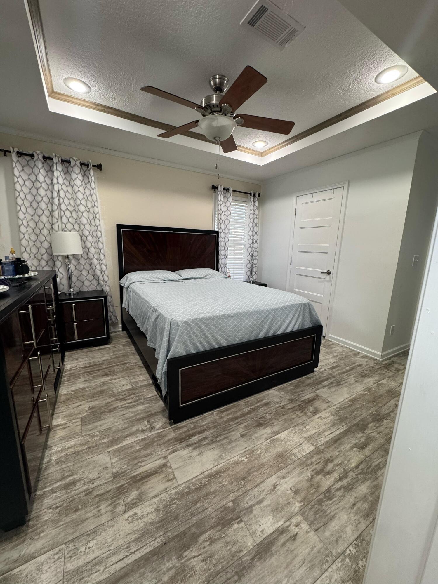 Charming Mobile Home in a community for all ages in Lake Worth Village! Beautiful and comfortable 4 bedrooms and 2 bathrooms, with elegant tray ceilings with wood accents, recessed lighting, and luxury laminate flooring, a private retreat with a double vanity spa-style bathroom, spacious covered front porch for relaxing, and private carport.Don't miss out!. All measurements are approximate. Call the listing agent to schedule a showing.