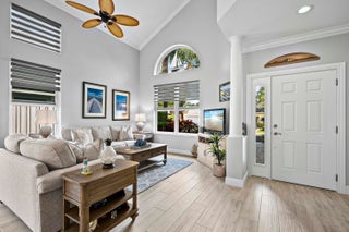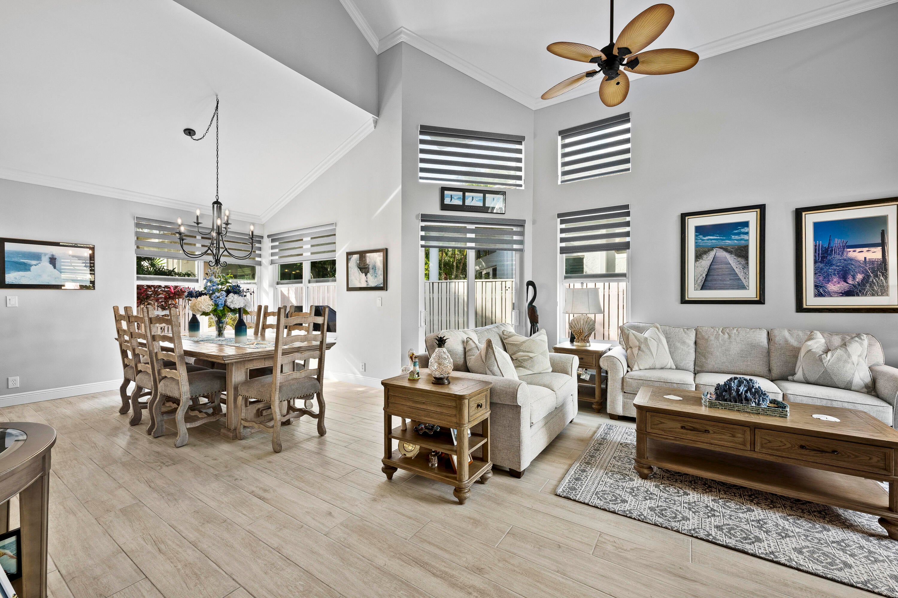 Luxury beachside living awaits in this impeccably completely renovated residence within the exclusive, gated community of Sea Colony. Just steps from Jupiter's pristine, pet-friendly beaches, this elegant 3-bedroom, 2.5-bath home plus cabana bath offers soaring vaulted ceilings, abundant natural light w/all impact windows & doors, and seamless indoor-outdoor living. Completely renovated in early 2020, the open-concept design showcases a chef-inspired kitchen w/granite countertops & breakfast nook flowing effortlessly into refined living and dining spaces. The upper level features a serene primary suite with en-suite bath & 2 walk-in closets, complemented by 2 beautifully updated guest beds & bath. Designer finishes include crown molding throughout, marble-tiled master bath, engineered hardwood upstairs, porcelain wood look flooring on main level, & custom zebra window treatments. The home has been extensively upgraded with a new roof (2020), new gutters (2020), new pavers in the driveway, back and side yard (2020) & a new fence (2020). All impact windows and doors installed in 2017, along with a new impact-rated garage door (2017), providing peace of mind and long-term value. Enjoy a private, fully paved L-shaped patio with outdoor shower ideal for entertaining after a day at the beach. An attached 2 car garage completes this exceptional offering with epoxy floor, shelving, cabinets, extra storage, double impact window, designated plug for car charger and an electric car plug outside by garage door. Sea Colony delivers resort-style amenities including 24-hour gated security, private beach access, heated and cooled pool and spa, tennis and pickleball courts, fitness center, and a fully funded entrance renovation currently underway with no assessments due for town. Experience the ultimate Jupiter lifestyle with world-class golf, waterfront dining, boating, fishing, and boutique shopping just moments away.