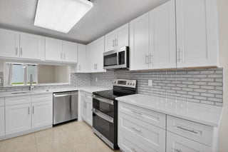 Renovated ground floor condo in 55+ community, Watersedge at Lakes of Delray. Move right into this beautifully updated, all tile condo w over 1,350 SF, 2 bed, 2 bath, located in the highly desirable community in Delray. This spacious condo features a bright, open floor plan with a brand-new eat-in kitchen boasting white shaker cabinets, quartz countertops, and stainless steel appliances. The primary suite includes a walk-in closet and en-suite bath. Both bathrooms have been tastefully updated. Enjoy peace of mind with a new roof and elevator recently installed in the building. Community amenities include a pool, clubhouse, tennis courts, gym, pickleball, card games, and more. Conveniently located near shopping, dining, and just minutes from the beach, South Florida living at it's best.