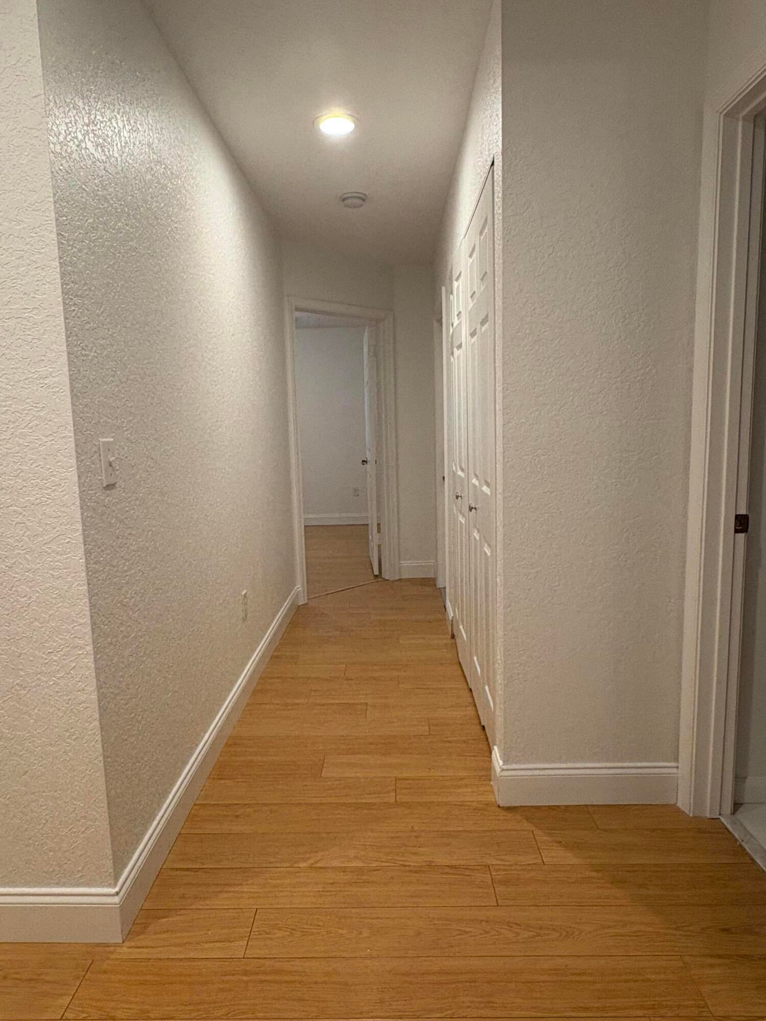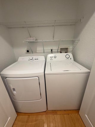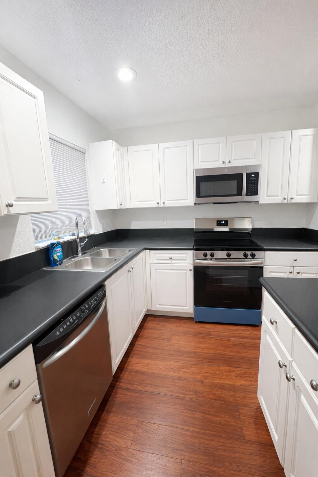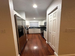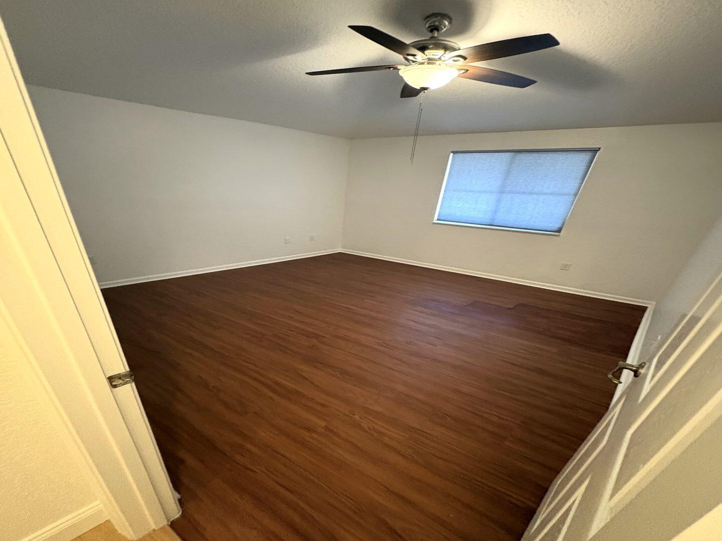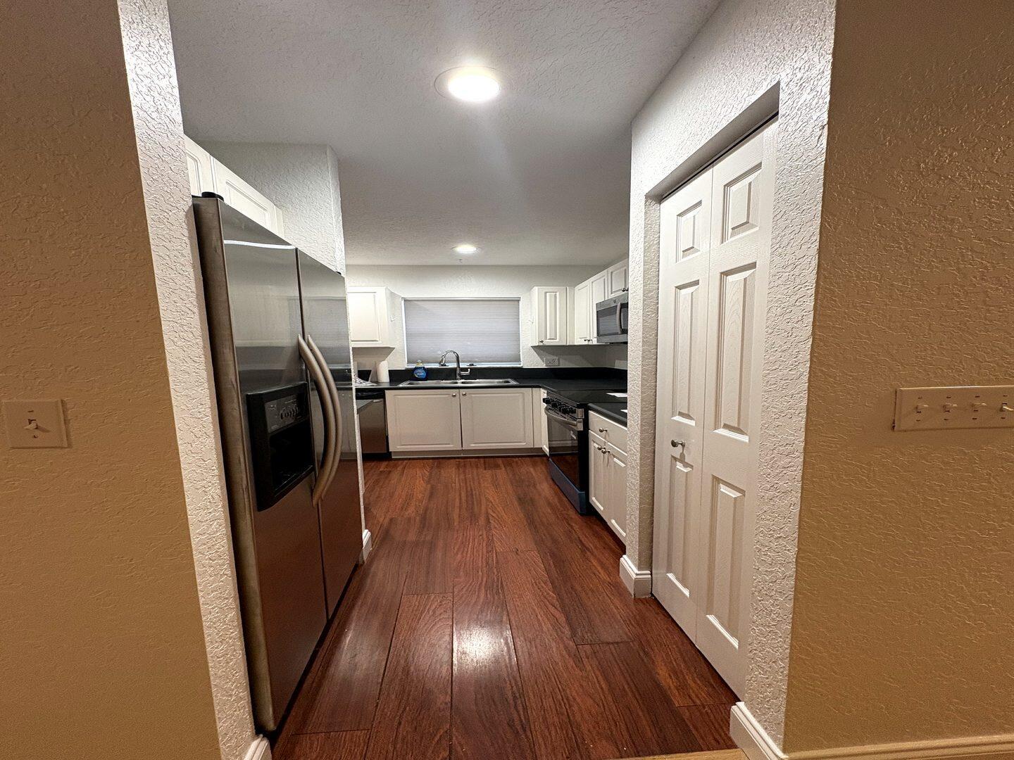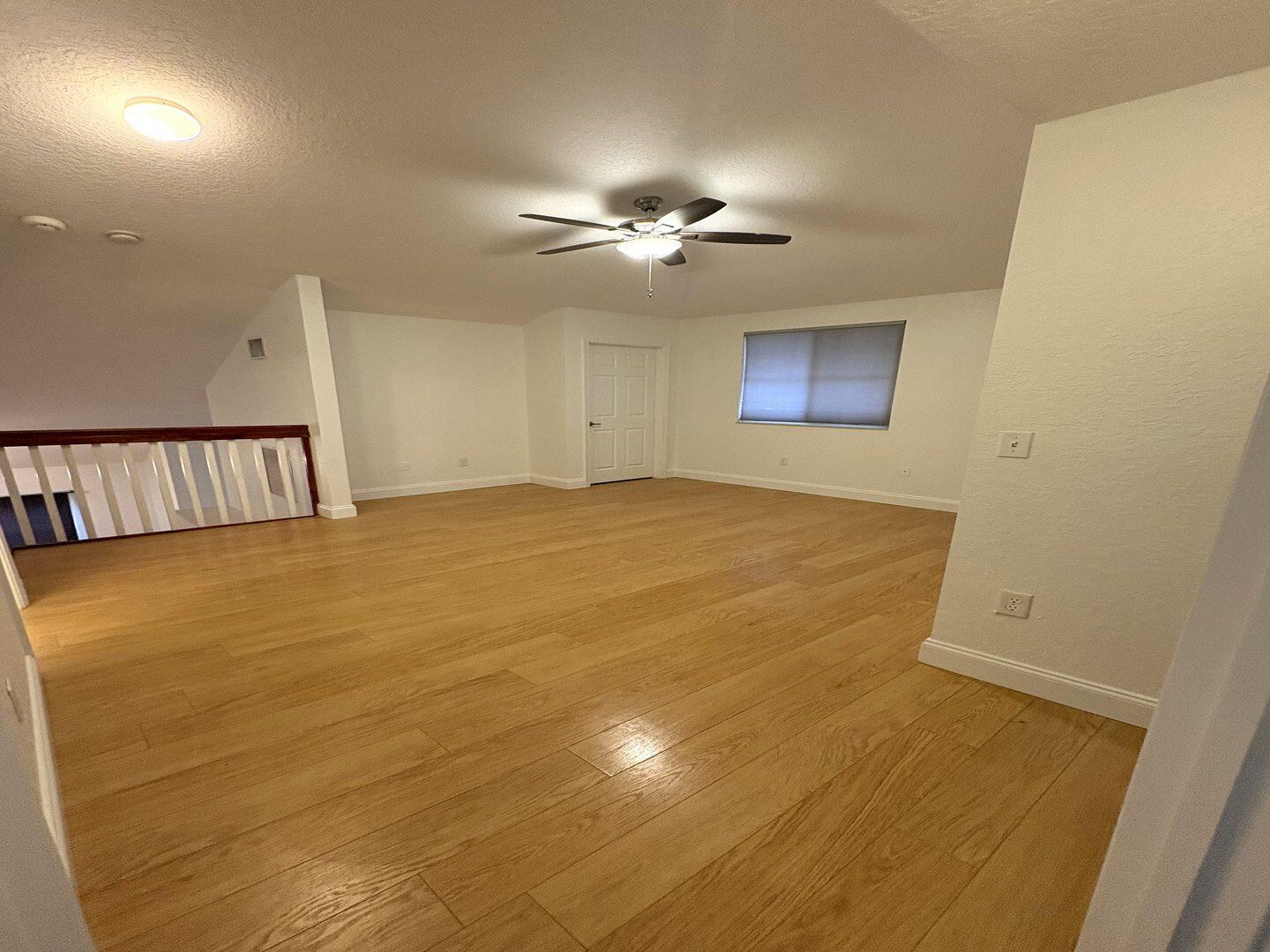 Available Now! Newer corner-unit 3BR/2.5BA loft townhome with 1-car garage and 2-car driveway, offering 1,887 SF of living space. Open first-floor layout with living, dining, and breakfast areas, remodeled kitchen with stainless steel appliances, laminate wood floors, volume ceilings, and first-floor laundry with full-size washer/dryer. Primary bedroom downstairs with custom walk-in closet and en-suite bath. Upstairs features a large loft, two bedrooms, and one full bath. No rear neighbors--faces a private preserve. Community pool. Pets allowed.