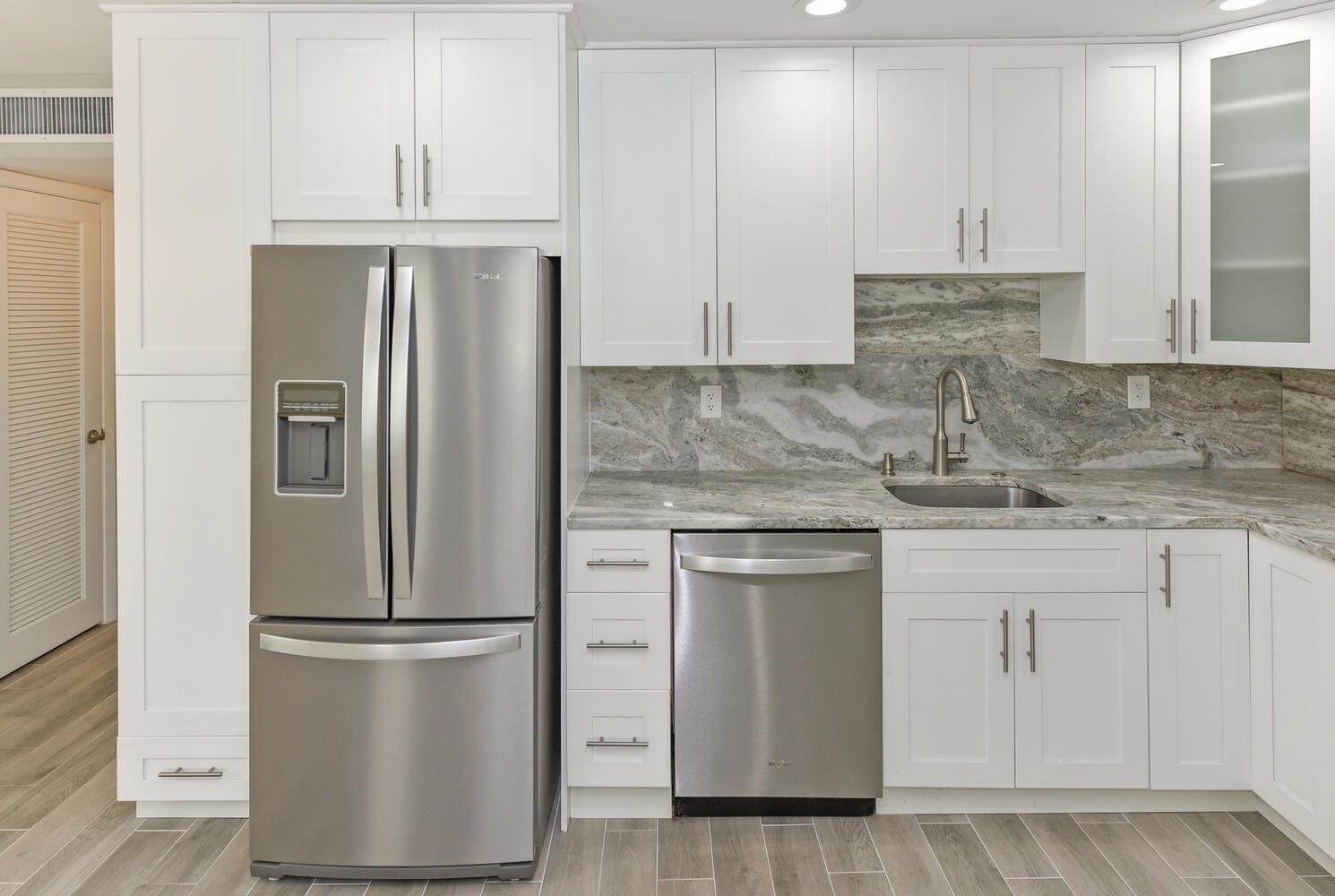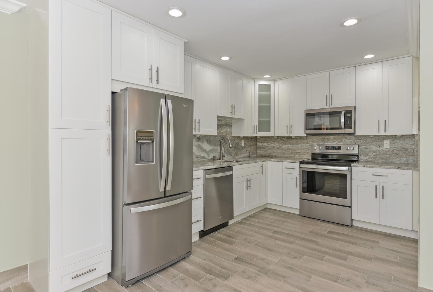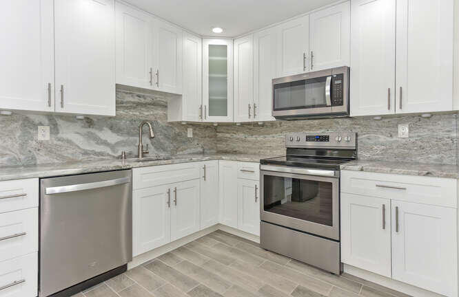 Totally remodeled luxury condo featuring numerous upgrades, including, an open floor plan exquisite flooring throughout, a beautiful custom-designed kitchen with gorgeous countertops and a full backsplash, plus a high-end stainless-steel appliance package, remodeled bathrooms with luxurious shower, a full-size front-load laundry center, full impact hurricane windows and doors, and crown moldings, no popcorn ceilings! Enjoy the enclosed patio year-round in this private second-floor corner condo is super clean and move-in ready, with resort-style amenities include golf, pickleball, pools, bocce, tennis, fitness centers, a shuttle bus, and more. Also enjoy clubs, shows, and theater. Kings Point is a 55+ community just minutes from Downtown Delray, restaurants, shopping and the beaches.