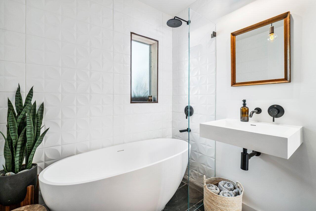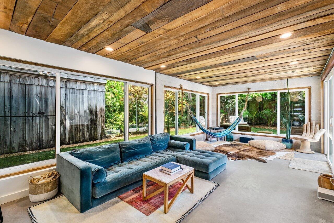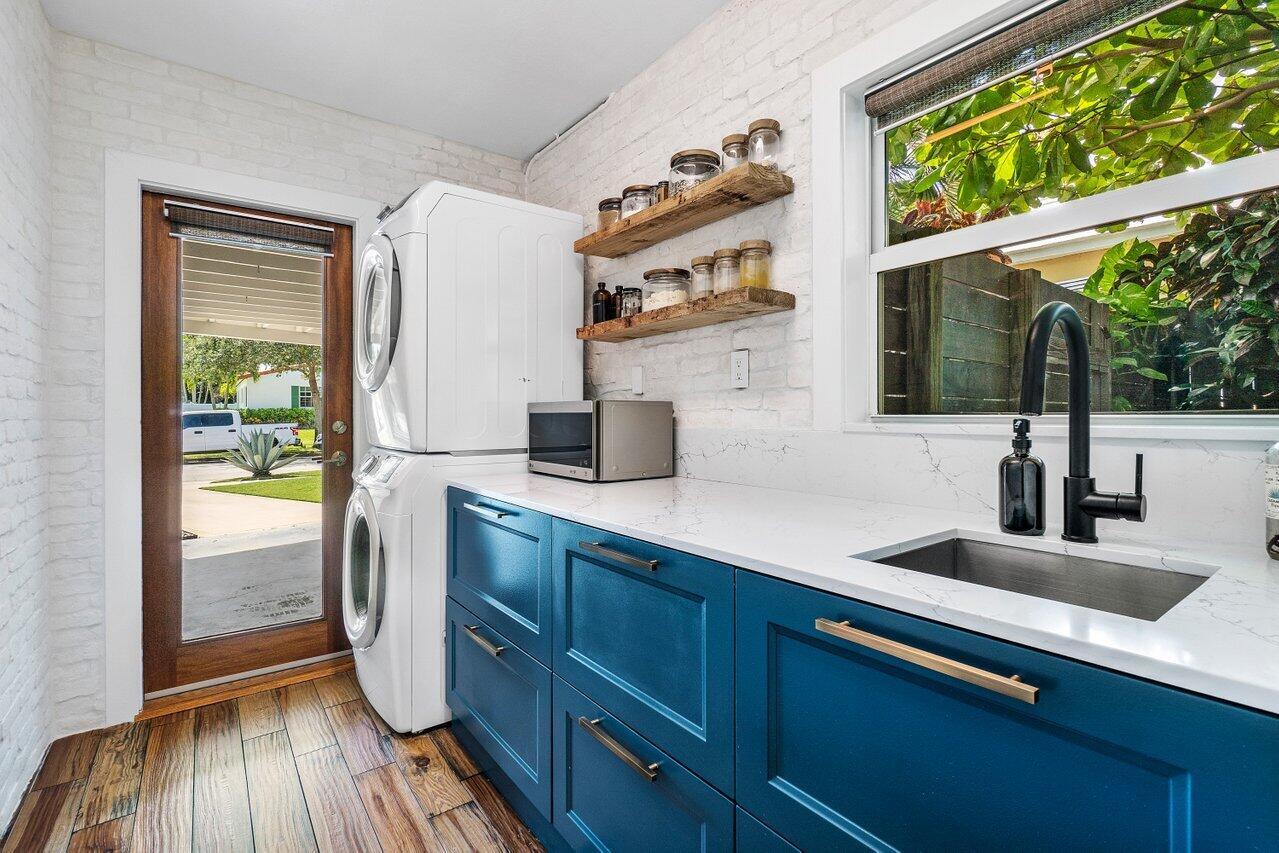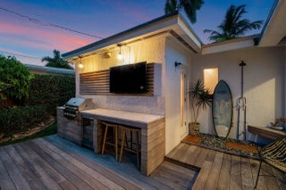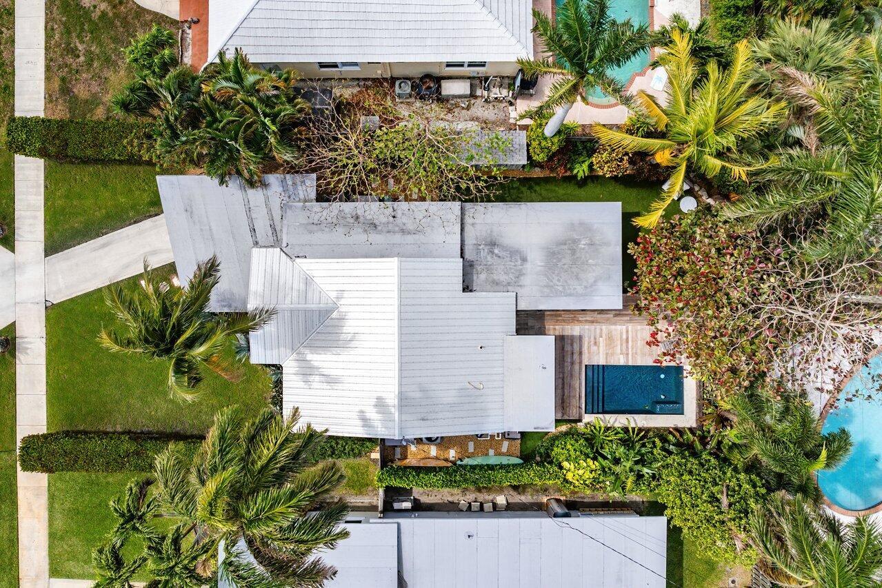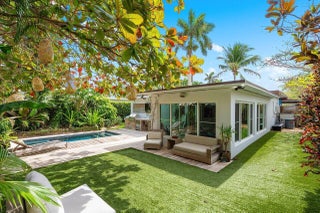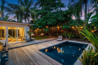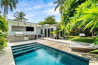 Modern Tropical Bungalow just steps from the intracoastal waterway in the coveted non-historic district of Northwood Shores. Completely renovated, turn-key single family home with solid hardwood and polished concrete floors. 2 bedrooms, 2 full baths with open floor plan and oversize Florida room that opens out to a heated, salt-water plunge pool with Ipe-wood decking, an Outdoor Shower and lush landscaping. Outdoor Carrera Marble countertop with built-in gas grill and wine fridge. Pet-friendly artificial turf in back and Bermuda grass in front. Interior features Kitchen-Aid appliances, Cesar-Stone countertops, gas range, and reclaimed white oak cladding. CBS block construction. Impact windows/doors, new metal roof in 2019. Short bike ride to downtown or the beach. Owner is agent.