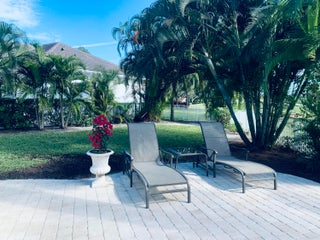 Bright & beautifully furnished rental! Leaded glass front doors open into this one-story home with tranquil golf course views--light & open offering 3 bedrooms & 3 baths featuring volume ceilings;4'x4' porcelain tile floors in the living areas,laminate & bamboo floors in the bedrooms;a fabulous gourmet island kitchen with custom high-gloss & wood veneer cabinets,quartzite counters with waterfall edge & stainless steel appliances;spacious Master Suite with custom-configured walk-in closet; remodeled secondary bathrooms; custom blinds & window treatments & more! The large pie-shaped lot offers an open patio with a pool & a spacious grassy area. New front & rear landscaping.Golf cart available for tenant use with deposit & maintenance. Furnished/turnkey available March 1- November 30, 2026.