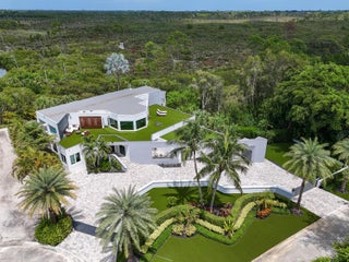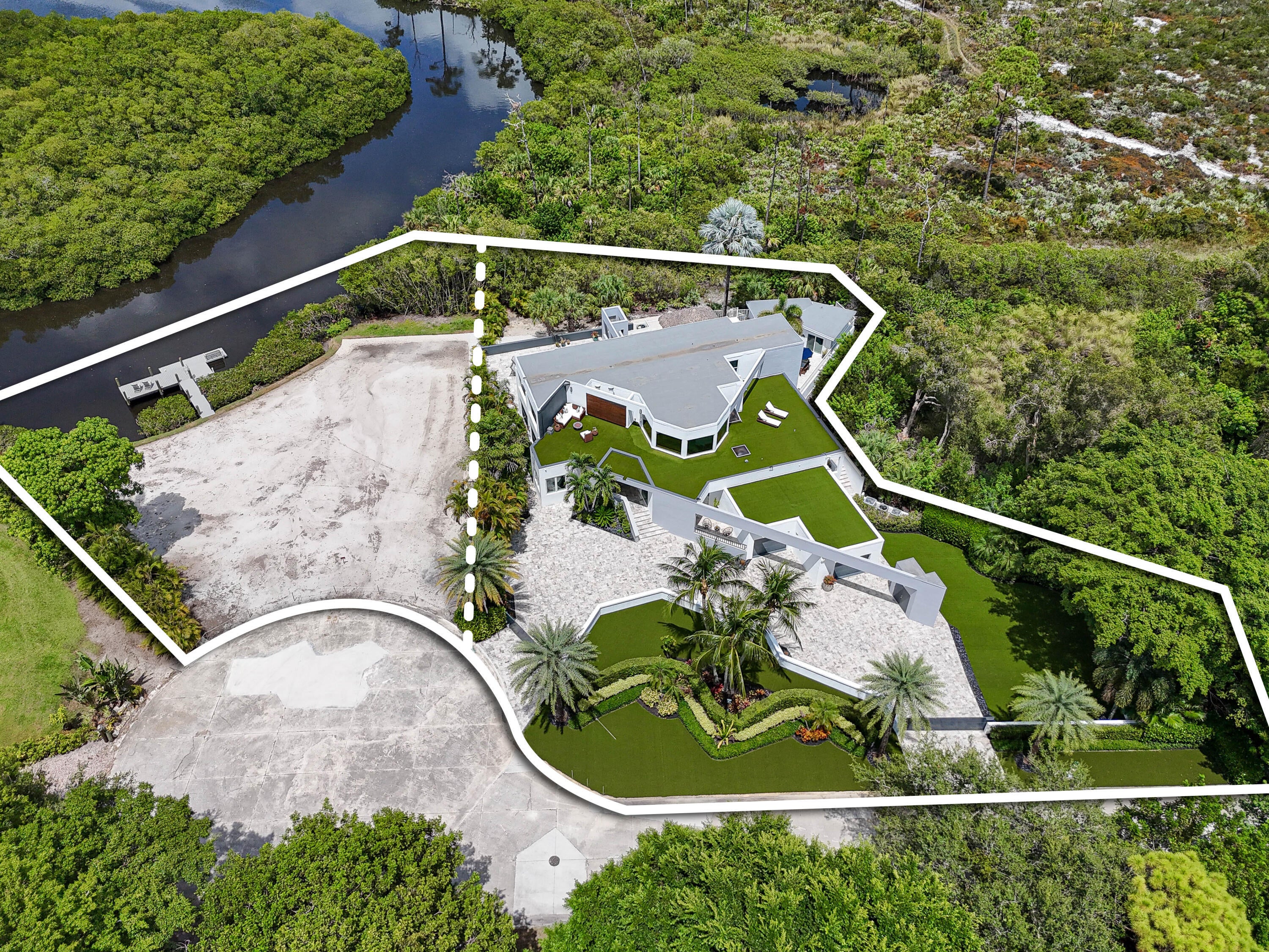 Double Lot .76 acres on the River with 140 ft of water frontage and ocean access. Two Properties being sold together. Lot 8 is fully developed with Newly Renovated House, Guest House, and Property. Lot 9 has been cleared, filled, and graded, setting the stage for your future vision. Ready to build on, or it can be combined with the current home (lot 8) to make one large property on the River. New Large Dock, Pilings and a New Floating Dock are already in place. A Special Property with a 'lot' of upside potential. Stunning, Fully Furnished CBS Modern Home with Detached Guest House, Large Captivating Pool, Cedar Built-In Sauna, Turf Rooftop Decks and Lawn, Expansive Silver Travertine Driveway & Pool Deck, Hardscaping with Private Gated Entry. Epic Views of Loxahatchee River & JD State Parkwith sunset views. Minutes to the Beach. 5 Bedrooms, 4.5 Bathrooms offering nearly 5000 sq ft of Airy Living Space with Abundant Natural Light. Large Private Property with 18 sq. miles of Park Land for Hiking/Biking Trails from your back door access. Awe-Inspiring Second Level Master Bedroom Suite with office/exercise room and outside shaded deck offering breathtaking 180 degree views of the River and Park. Access to the outside from every room in the house via patio, balcony, deck, and rooftop. New recent upgrades include: New Roof, Entrance & Exit aluminum powder coated modern Driveway Gates, Silver Travertine Driveway, Porcelain Floors in kitchen, family room, dining room, bathroom, laundry room, and center Glass Staircase area, new Tiki Hut, exterior & interior Painting, extensive Landscaping, Hardscape work including Black Polished Japanese Stones surrounding property, and exterior stucco/wood work. Gourmet kitchen, Two dramatic and elegant working marble fireplaces, custom glass staircase railing, Impact glass windows and doors, New Oversized Impact Garage Doors, Three car garage w/ finished floor, Volume Ceilings, Large Heated Salt Water dark bottom Pool with Glass Tile and pool shelf(baby friendly), Silver travertine decking throughout the backyard, large covered front porch, stairs, paths, balconies and lanai area. Large driveway with ample parking for cars, boats, or RV. Security cameras & Alarm system. No HOA fees and low Martin County taxes. Just minutes to shopping, fine & casual dining, entertainment, and the beach. PBI is 30 minutes away.