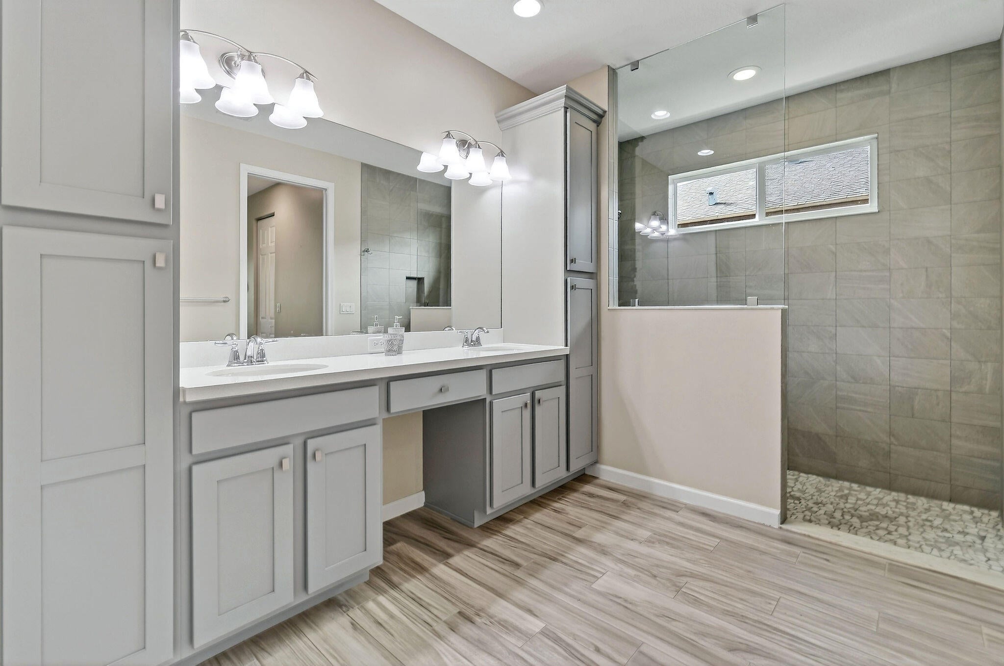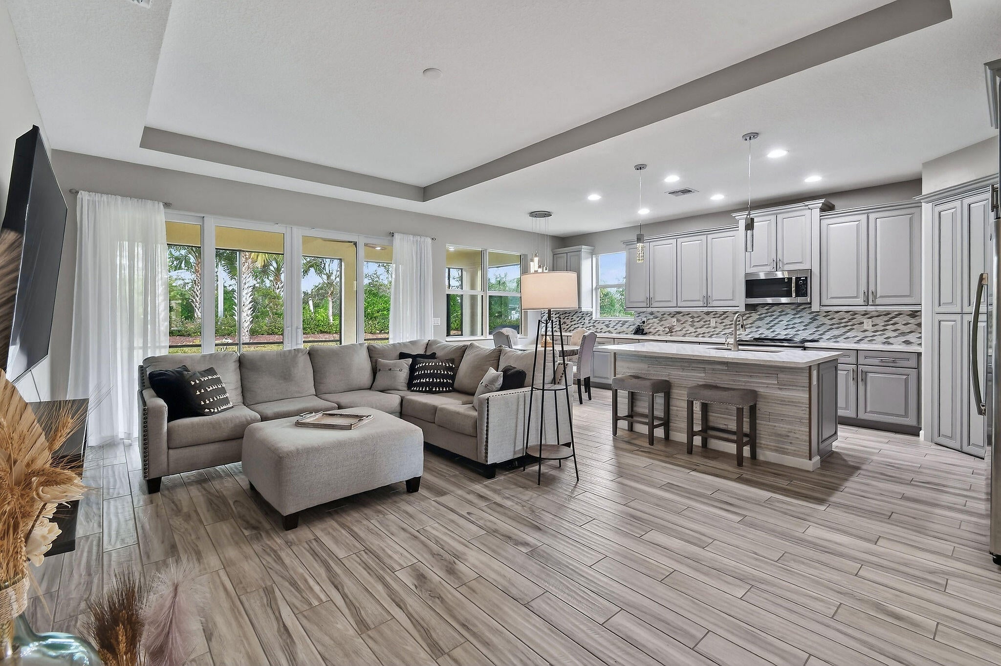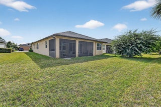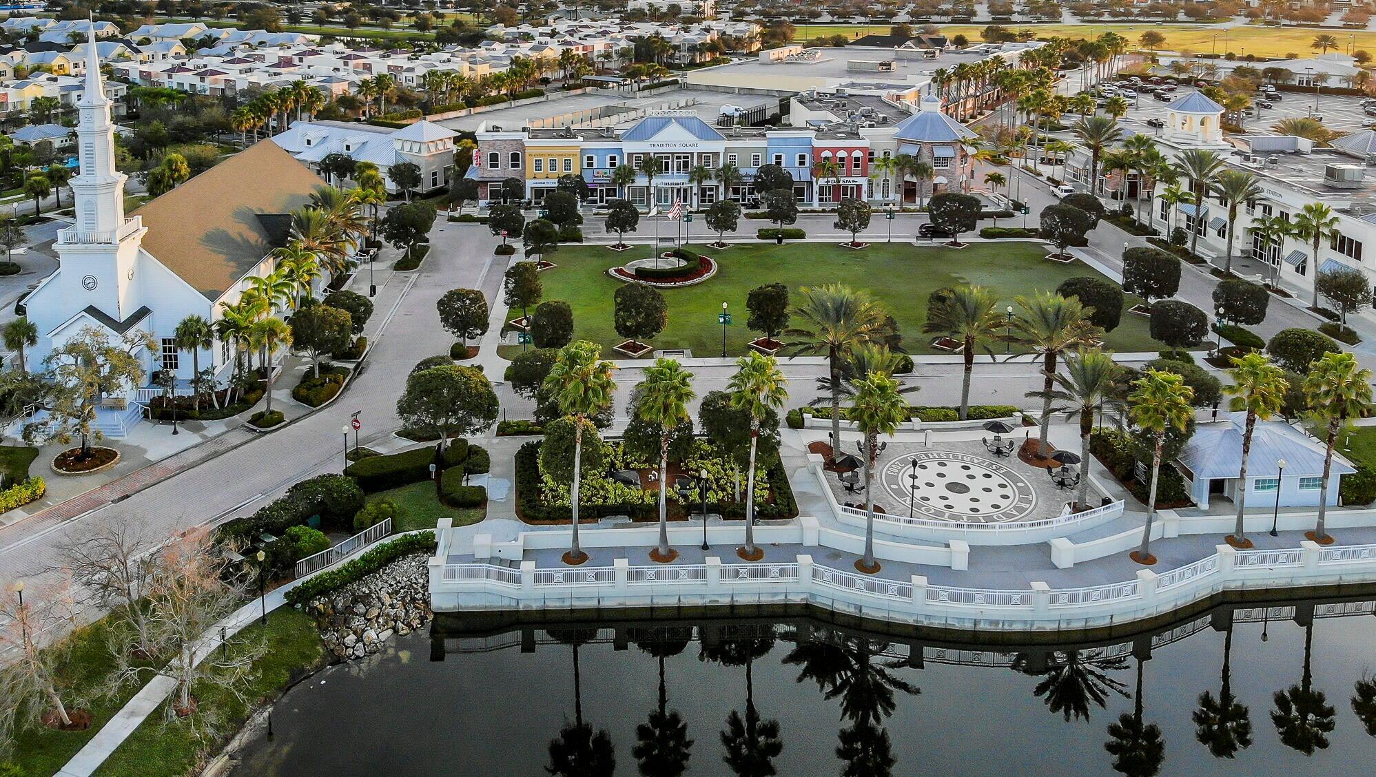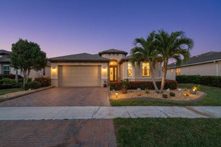 REDUCED! Enjoy life in this peaceful but active over 55 community. Pristine 3 bed, 2 1/2 bath PLUS OFFICE, mudroom, Large ISLAND kitchen, one-touch custom blinds, neutral paint, TILE floors throughout, TWO master walk-in closets, IMPACT windows and doors, professional garage organizer, PRIVATE screened back patio. Community amenities: 2 heated pools, multi-million$ clubhouse, hot spa, waterpark, basketball, tennis, bocce, billiards, gym, yoga, game room, picnic areas, more! Walk to downtown Tradition, offering many festivals, activities and concerts, dozens of upscale neighborhoods with lakes, walking trails, parks, shopping, al fresco DINING, Cleveland Clinic HOSPITAL. Nearby is GOLF, hiking, BEACHES, nightlife, BOATING, NY METS spring training and so much more. PBIA only 50 minutes.HOA Includes almost everything! Blue Stream Fiber is your local provider for super-fast Internet, TV, phone and home security services to the residents of the various Tradition communities, included in your HOA payment. Additionally, lawn mowing, edging, trimming, irrigation \ irrigation system and exterior pest control are all included. FURNISHED: Two of the three bedrooms are furnished, plus an office, the eat-in-kitchen dinette set and the living room set, and the wall mounted television are all included in the sale. Mrs. Clean lived here and the place is spotless. Bring your clothes and toothbrush and be ready to enjoy the good life in sunny Florida.