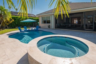 Move-in ready 3BR/2BA Plus Den with beautiful new updated pool & hot tub at The Club at Ibis! Over 2,200 square feet of living space plus a screen enclosed patio and lush manicured landscaping surrounding the fenced in pool area. This popular great room floor plan is open and airy and has loads of cabinet space in the kitchen and extra closet space in the master bedroom. This home is in excellent condition with a new A/C system (2024). Pride of ownership is evident from the minute you arrive. The lot overlooks the Nicklaus designed Tradition Golf Course and residents enjoy access to all of the great amenities that Ibis has to offer. There are three championship golf courses, 16 tennis courts, 7 pickleball courts plus swimming pools, fitness center, spa and four delicious dining venues!