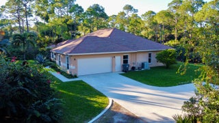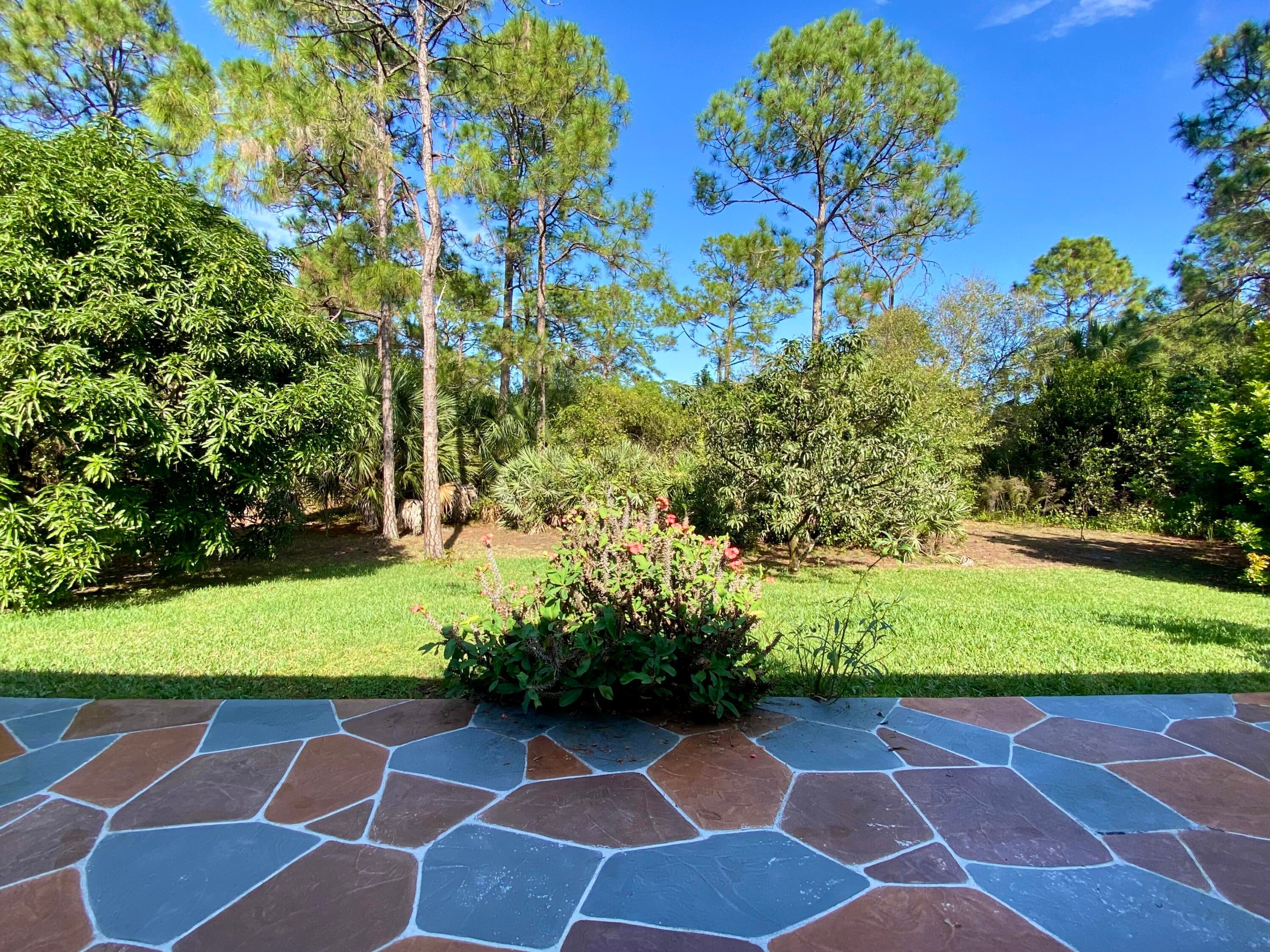 This extremely clean & impeccably maintained, gently lived-in CBS concrete block 4 bedroom 3 bathroom PLUS Den/Office with 2 car garage home on 1.25 Acres ON a PAVED road in Jupiter Farms is ready to move in to. Triple split bedroom plan, cabana bathroom, vaulted ceilings, large kitchen, inside laundry room, storm protection for all windows & doors, generator with hookup, this lovely open living plan with screened patio boasts a private yard with plenty of fruit trees to enjoy. One owner home has never had a pet inside or outside. This home is one street away from a 12,000 nature preserve so you will always appreciate the tranquility of this special location. A+ schools, minutes from rivers, beaches, preserves, restaurants and shopping. *INTERIOR photos will be added soon.