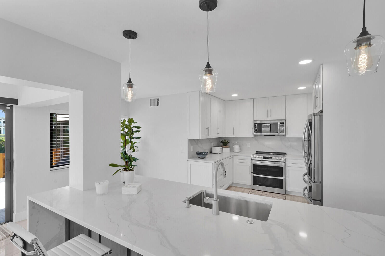 Unmatched in the market! This exquisite & immaculately renovated 3BR/3 full BA end unit on 1st floor comes with a 50 FT. private boat slip & a new 30,000 LBS. state of the art boat lift. Enjoy the stunning & expansive Lake Worth views through impact glass sliding doors. Preferred South East exposure fills the unit with natural light year round. Feels like a private home w/ 3 patios and a private corner entrance. Deep water marina w/utilities, NO fixed bridges, 10 min. direct access to the Palm Beach Inlet, Ocean, and the Bahamas. Enter the boutique community through a man gated entrance under a majestic Oak canopy. Beautiful beaches, golf courses, upscale dining, shopping. Pools, pickle ball/tennis courts! This is absolutely the best location for the avid boater & fishing enthusiast!