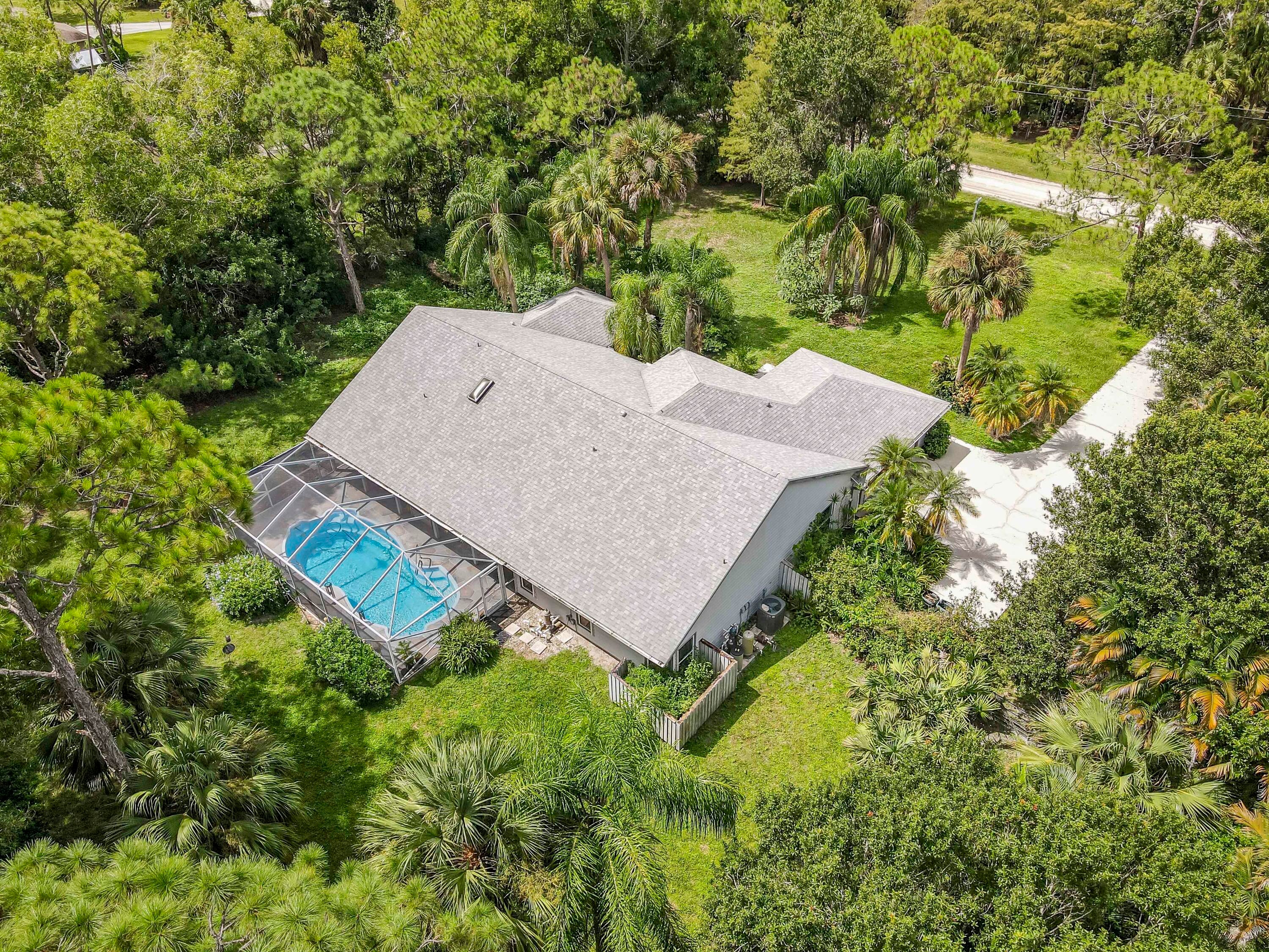 She's very healthy, but she DOES need a facelift! The original owner has 35 years of happy memories in this home, and its next happy chapter could be yours! Tall ceilings send your gaze upward as you imagine your own touch on over 2500 sq ft of potential: Laid out with family function in mind, you have 4 bedrooms and 3 full baths, including a very sizable primary bedroom, bath and his & hers walk-in closet. Outside, a screened pool deck on a fully fenced and private 1.25 acres. Roof replaced 2012, AC 2018, water heater 2018, whole house water softener and Reverse Osmosis water purifier in the kitchen. Impact windows in the living room, hurricane fabric for the remaining openings. Blueprints are available in the Documents. This is a friendly neighborhood in Jupiter Farms with freedom ofHOA! Bring your trucks and animals!