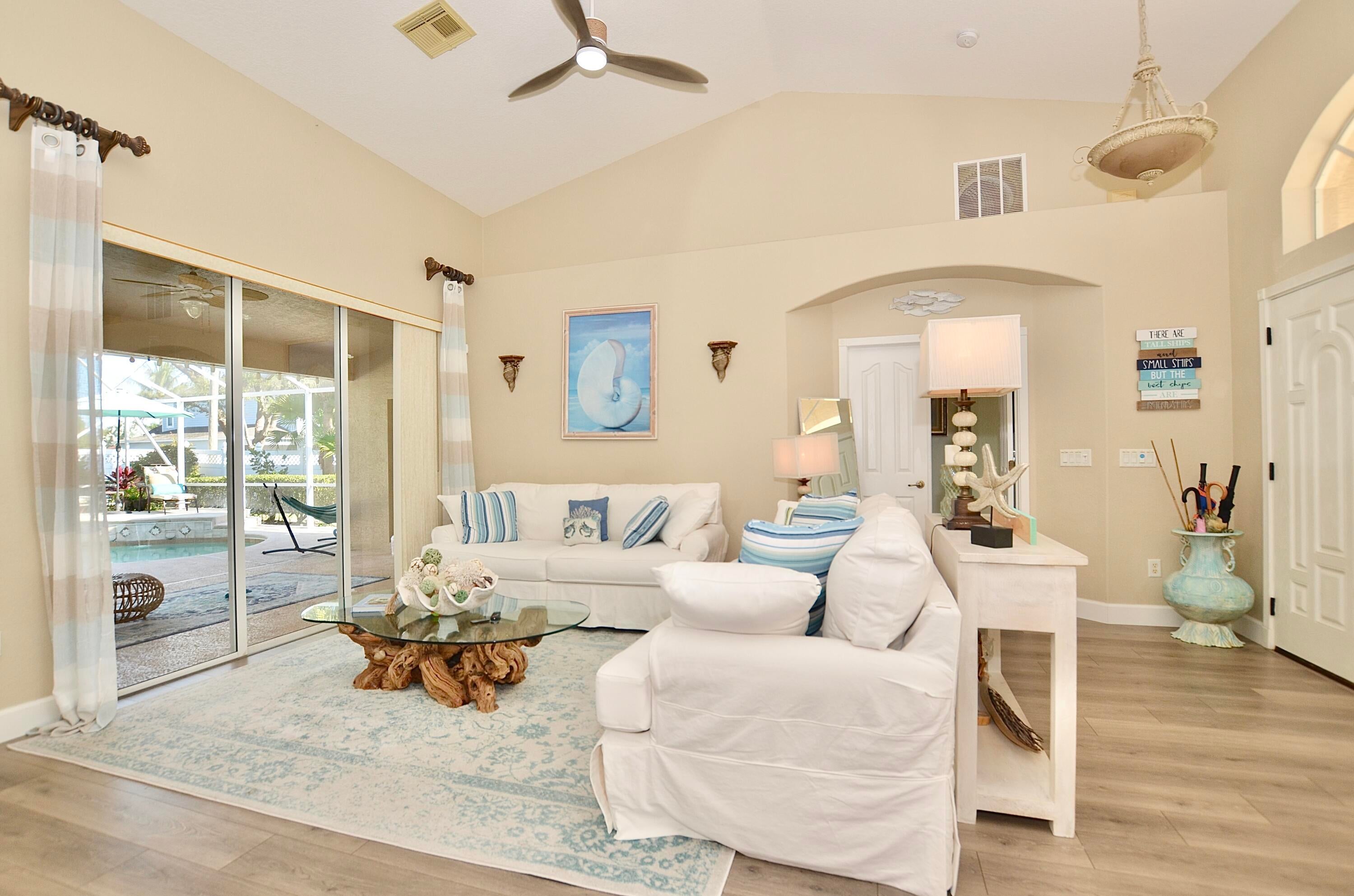 You will fall in love with this Gem Solitaire sun-filled 3bed/2.5bath CBS home in the sought-after Tulip Park area! This home checks all the boxes. .. split bedrooms with new aqua defense waterproof beach wood laminate in main part of house and secondary bedrooms, screened lanai with pool, updated glass shower doors and shower tile, and NO HOA or CCD!The chef's kitchen is with plenty of cabinets, neutral corian counters, SS appliances, breakfast nook and bar. The owner's suite is a retreat w/ slider to the screened lanai and the spa-like en-suite is massive with his/hers sinks roman tub & shower. 2018 roof with gutters, 2024 water heater, 2020 HVAC, seperate generator connections. All this and so much more! close to I95, all shops and restaurants. A must see!