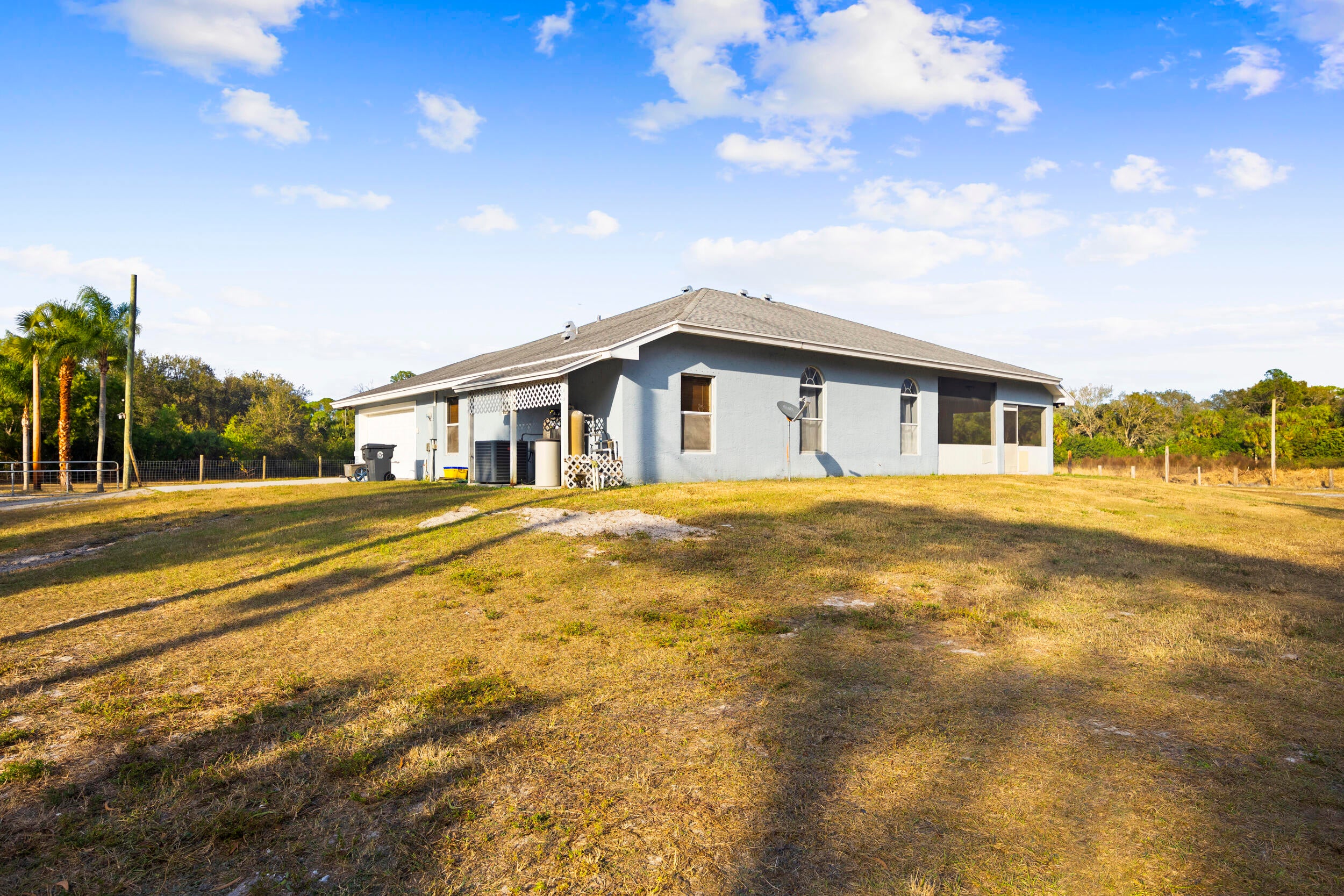 Five acres. No HOA. Private pond with dock. Three storage sheds already in place. This Loxahatchee property delivers what Palm Beach County's gated communities cannot offer at any price--land you actually control. CBS home with 1,900 SF, wood floors in the master suite, volume ceilings, screened patio overlooking your acreage. AR zoning permits horses, livestock, and agricultural uses without approval. Commercial-grade well and filtration system installed 2016. Fully fenced 91x756 lot places the home at front, leaving the majority of five acres open for barns, paddocks, guest house, or workshop. Minutes from Wellington's equestrian facilities and shops. If you're done with 50-foot lots and HOA committees, this is the property you've been searching for. Your land, your decisions.This 5-acre Loxahatchee property represents one of Palm Beach County's increasingly rare opportunities to own substantial acreage with no HOA restrictions, AR agricultural zoning, and a turnkey home already in place. This Sunny Urban Meadows homesite delivers the privacy, flexibility, and land ownership that buyers searching for acreage near Wellington simply cannot find in the region's master-planned communities.For buyers asking whether you can have horses in Loxahatchee, the answer is yes. Palm Beach County AR zoning permits horses, livestock, poultry, and agricultural uses without HOA approval or architectural review. This is the zoning classification that attracts equestrians, hobby farmers, and buyers who simply want the freedom to use their property without restrictions. Purchasing acreage in Loxahatchee requires specific due diligencefrom well and septic inspections to fence line verification to understanding what AR zoning does and does not permit. Buyers unfamiliar with these considerations should work with representation experienced in western Palm Beach County's unique property characteristics.The property at 4584 Windmill Road sits on 5.21 acres in Sunny Urban Meadows, an unrecorded subdivision of similarly sized parcels west of Seminole Pratt Whitney Road. The lot configuration91 feet of road frontage extending 756 feet deepplaces the existing home and three storage structures near the front of the property, leaving the majority of the acreage undeveloped and ready for the next owner's vision. The fully fenced perimeter provides immediate containment for horses or other animals, and the private pond with wooden dock at the back corner of the property adds both aesthetic value and potential agricultural utility.The existing CBS-constructed home was built in 1999 and provides 1,882 square feet of living space in a practical single-story layout. The interior features tile flooring throughout the main living areas with wood flooring in the master suitea configuration that balances durability in high-traffic spaces with the warmth buyers expect in the primary bedroom. Volume ceilings and arched windows throughout the living room, dining room, and secondary bedrooms create an open feel despite the home's modest footprint. The kitchen features white raised-panel cabinetry, laminate countertops, and a pass-through window to the living area. While the finishes reflect the home's 1999 construction date, the structure is solid CBS construction and the layout is functional for buyers who prioritize land over interior upgrades.The master suite occupies a private wing of the home with sliding glass door access to the screened patio. The master bathroom features dual vanities, a Roman soaking tub positioned beneath an arched window, a separate walk-in shower, and a private water closet. Two additional bedrooms share a full bathroom with tub-shower combination on the opposite side of the homea split floor plan that provides separation between the primary suite and secondary sleeping areas.The screened patio spans the rear of the home and overlooks the open acreage, providing covered outdoor living space with views of the property's mature trees and natural landscaping. This is the space where the scale of five acres becomes realstanding on the patio, the next owner can envision where the barn will go, where the riding arena could be positioned, or simply appreciate the buffer between their home and the nearest neighbor.Infrastructure improvements made by the current owner add significant value for buyers who understand acreage property operations. A commercial-grade well and water filtration system installed in 2016 provides reliable, clean water independent of municipal utilities. Three storage sheds have been added to the property, providing immediate utility for equipment storage, feed, tools, or workshop space. These are the improvements that cost time and money to add after purchasehaving them already in place accelerates the timeline for buyers ready to put the property to use immediately.Loxahatchee real estate occupies a unique position in Palm Beach County's housing market. Located west of Seminole Pratt Whitney Road and north of Wellington, the area offers five-acre and larger parcels with AR zoning at price points that would purchase a fraction of an acre in Wellington's established equestrian communities. For buyers willing to trade Wellington's paved roads and proximity to show grounds for acreage and autonomy, Loxahatchee delivers exceptional value. Understanding the tradeoffs between Wellington convenience and Loxahatchee freedom is essential before making this decision.New construction communities like Arden and Avenir have absorbed significant buyer demand in western Palm Beach County, offering modern floor plans, resort-style amenities, and low-maintenance living. These communities deliver real value for buyers seeking that lifestylebut they serve a fundamentally different buyer than the one searching for five acres with no HOA. Arden and Avenir lots typically measure 50 feet of frontage or less, with full HOA governance, architectural review requirements, and restrictions on vehicles, animals, and