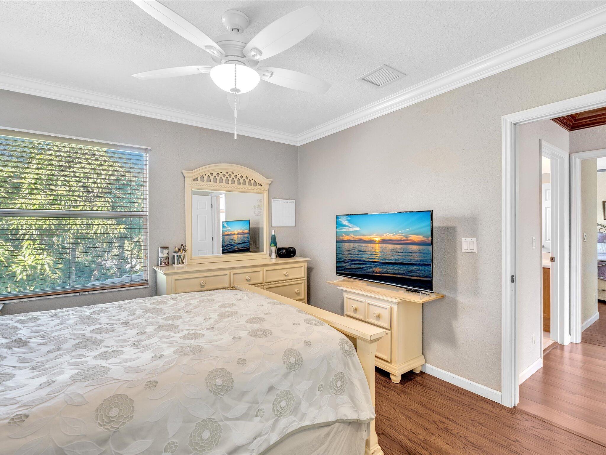 Beautifully maintained 5-bedroom, 4-bath home in the desirable Sabal Lakes! great location. featuring high ceilings and crown molding throughout. the spacious primary suite is conveniently located on the main level floor, while four additional bedrooms upstairs offer comfort and privacy, all equipped with ceiling fans. The home boast stainless steel appliances, a new a/c unit, and a newly renovated bathroom. enjoy durable ceramic tile flooring on the main level and laminate flooring upstairs. step outside to a fully fenced backyard perfect for entertainment or relaxing, and enjoy a peace of mind with fully accordion hurricane shutters throughout the home. this property combines style, comfort and functionality. just minutes from beaches, dining, entertainment along Atlantic ave. low HOA