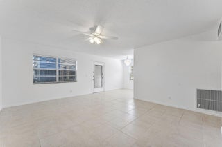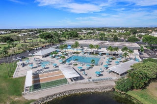 Light, bright, corner Two bedroom, two bath condo on the ground floor facing the garden. Kitchen has refrigerator and range. Stall shower in master bathroom. Tub shower in guest bathroom. Patio has impact windows and washer and dryer. Community offers bus service, golf courses, five outdoor pools, indoor lap pool and resistance pool, shows, ceramic classes, card games, bingo, community events and so much more!
