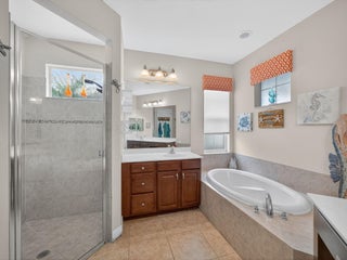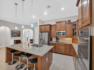 An entertainer's dream awaits in the highly sought-after Victoria Parc at Tradition, where resort-style living meets everyday convenience. Step into your private backyard retreat, featuring a fully equipped outdoor summer kitchen with grill, sink, refrigerator, and ice machine, a custom 6-person ThermaSpa, and over $7,500 in upgraded electrical for TVs, lighting, and more--perfect for relaxing or hosting year-round. The fully fenced, pie-shaped lot offers generous side yards ideal for play, pets, or gardening, and is enhanced by a complete French drain system for peace of mind and usability in all seasons. This exceptional home boasts over $85,000 in owner upgrades and is truly move-in ready.Designed for seamless indoor/outdoor living, enjoy extended pavers with both the front porch and rear patio fully screened. Tinted impact windows and doors improve energy efficiency while keeping the interior cool and comfortable. Inside, the oversized primary suite features custom closets and shelving, blending style with smart storage solutions. Victoria Parc offers an unbeatable lifestyle with a gated entrance and HOA amenities that include cable, high-speed internet, alarm monitoring, landline phone service, and security gate access for added peace of mind. Residents enjoy scenic walking paths around the lake, the ability to kayak right within the community, and easy access to parks, shopping, dining, and entertainment. Ideally located in the heart of Tradition, you're just minutes from the Cleveland Clinic Tradition Medical Center and have quick access to I-95putting everything you need right at your fingertips.