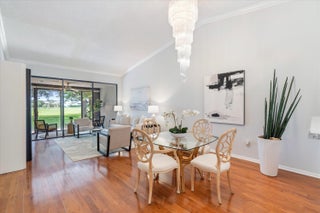 An immaculately maintained, spacious 2 BED/2 BATH one story VILLA. A peaceful retreat with a private courtyard entry, and large enclosed patio with lake and golf course views. This amazing home offers many upgrades including primary BR bay window views, two expansive walk-in closets, ample add'l storage, hardwood floors, vaulted ceilings, an in-home laundry room with washer and dryer, and accordion hurricane shutters. Rarely seen NON-MEMBERSHIP country club with extremely low priced golf and tennis options. 24/7 manned gate, 2 pools, 18-hole executive golf course, tennis, pickleball, pro shop, fitness center, restaurant, and entertainment clubs. GREAT LOCATION close to downtown Delray's world-class dining, beaches and shopping. A 55+ playground with something for everyone.