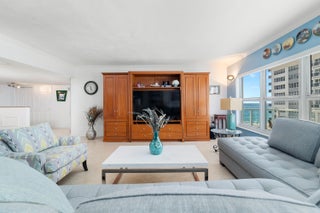 Experience coastal living at its finest in this spacious 2-bedroom, 2-bath residence with the largest two-bedroom layout in Regency South. Enjoy the breathtaking ocean view from your private balcony, where you can listen to the waves roll in. This turn-key home features a beautifully renovated kitchen with granite counters, stainless steel appliances, and a wine fridge, along with updated bathrooms and an elegant primary suite with a generous walk-in closet. Additional upgrades include impact windows and doors, newer AC and water heater. Offered fully furnished and move-in ready, this residence overlooks the pool and provides resort-style amenities in a premier beachfront building that has completed its 40-year inspection.