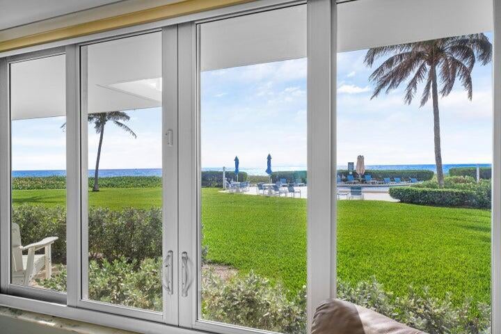 Experience the essence of coastal living at Banyan House in Delray Beach, set directly on the sand and just steps from Delray Beach Club, with Atlantic Ave. only 1.3 miles away. (THIS IS A 55+ BUILDING) This elegantly renovated 1-bedroom, 1.5-bath condo spans 1,066 sq. ft. Recent building updates and reserve funds ensure easy future maintenance. Enjoy a bright, open layout with expansive windows, a villa-like ground-floor ambiance, and sliding doors to a porch offering stunning ocean and pool views. Perfect for relaxation and entertaining, with seamless living and dining areas, and easy beach and pool access, complemented by well-maintained common spaces. Additional perks include storage, assigned parking, an onsite manager, and 24-hour front desk service.