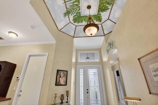 Charming Barcelona lakefront in gated Addison Trace! 4BR/2.5BA, 2,238 SF living (2,775 total). Bright open plan w/ 20'' tile, crown molding, shutters & custom murals. Kitchen w/ LG stainless pkg, pantry & breakfast bar. Primary suite w/ 2 walk-ins + spa bath; private 4th BR/den by powder room. Resort yard: Diamond Brite pool, Jacuzzi w/ new blower, pavers, new equip, Gulfstream heater + AquaLink Wi-Fi. Full impact + generator; Lennox A/C 6/3/21 w/ REME HALO + UV coil. Tile 2-car garage, central vac, Spanish tile roof. Clusia privacy + lake views. Minutes to A-rated schools, I-95/Turnpike, Atlantic Ave, shopping, hospitals & beaches. Impact garage door w/ Chamberlain opener + Rheem WH (2016). Move-in ready & meticulously maintained--rare artistry + a true backyard oasis on the lake!