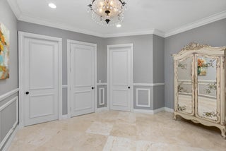 Tucked within the prestigious enclave of Boca Bay Colony, this waterfront estate blends timeless elegance with resort-style living. Set on over one-third of an acre with 150 feet of deep-water frontage, this five-bedroom, six-and-a-half-bath residence is designed for the ultimate South Florida lifestyle, complete with multiple boat accommodations, two floating jet ski docks, and a wide canal offering seamless ocean access.Inside, polished Saturnia marble flooring, high ceilings, and expansive windows fill the home with natural light. The open-concept layout flows effortlessly into the tropically landscaped backyard, where an elevated dock, authentic reclaimed coral decking, and a protected pool area create a private marine sanctuary perfect for entertaining or relaxing year-round.The chef's kitchen is outfitted with granite countertops and KitchenAid appliances, while the second-floor primary suite offers a private retreat with a sitting or exercise room, spa-style bath with sauna, and dual walk-in closets. Each bedroom is en-suite, including one guest suite with a kitchenette and private side entrance to the maids quarters, ideal for long-term guests or staff. Additional highlights include a private office, full-house generator outdoor speakers, and an epoxy-coated garage. The home also features a full-property invisible dog fence and is equipped with impact-rated windows and garage door for peace of mind. The entire exterior was repainted, making this meticulously maintained estate ready for immediate enjoyment. Just bring your boat. Shown by appointment only. The information published and provided including but not limited to prices, measurements, square footages, lot sizes, features, finishes, and calculations are subject to errors, omissions or changes without notice. All such information should be independently verified. All parties should perform their own due diligence to verify all information.
