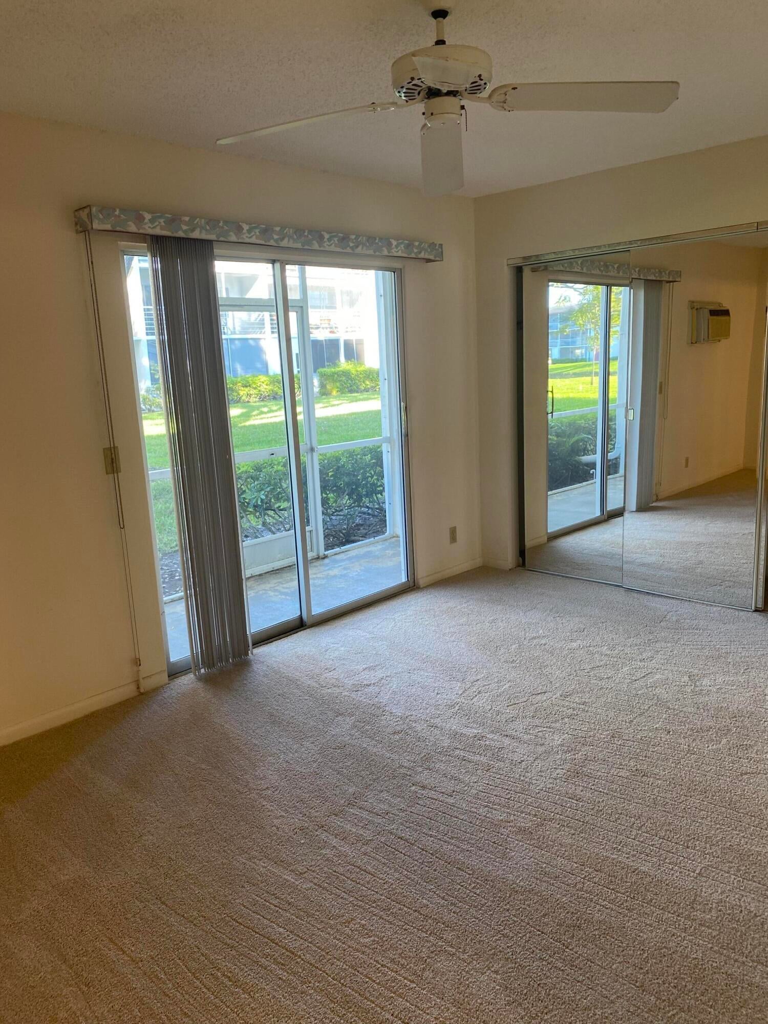 This wonderful sought after first floor unit has BRAND NEW Carpet and Range. Walk right out your door to Laundry, Mail and Parking. Spacious one bedroom with one and a half baths and great open living and dining area. Ready to move right into or for investors rent out immediately with no waiting period! Ample storage closet in hall and large closet in bedroom. Beautiful newly screened patio off bedroom with garden view. Century Village is a beautifully landscaped and maintained 55 plus community in Boca Raton which has a fabulous clubhouse with Tennis ,Pickleball, pool, transportation etc. See this property today!