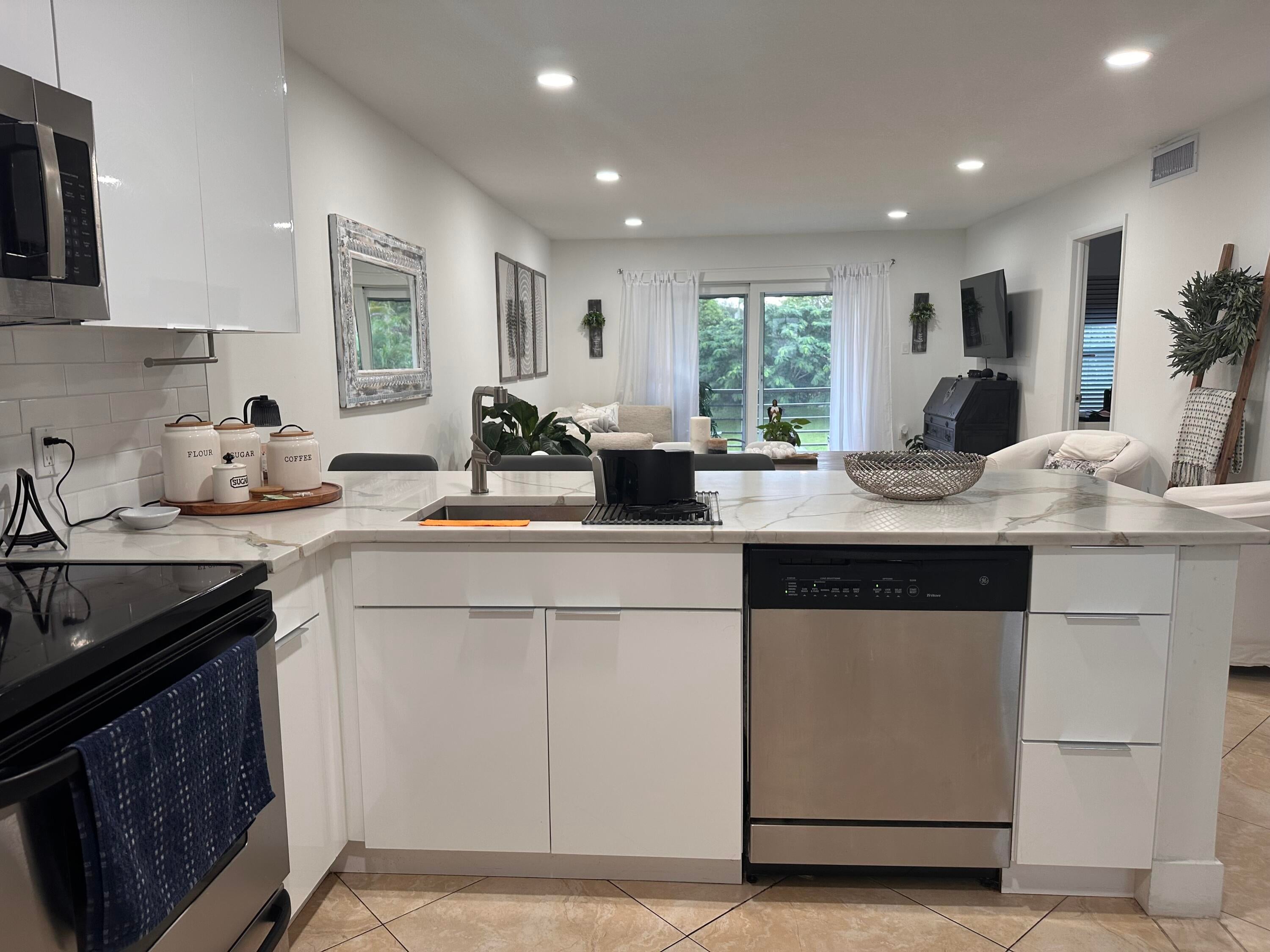 Completely renovated. Impact windows and front door. Open concept Kitchen. Marble bathrooms. Laundry and utility closet in unit. Beautiful screened balcony with lake views. Assigned parking and storage unit. Plenty of parking for guests. Club house renovated with pool, gym, tennis and pickle-ball courts. Pets are welcome. 3.3 miles to beautiful Delray Beach.Delray Beach offers near by golf, cultural experiences, outdoor recreation, fitness and spots, social night life and community events.
