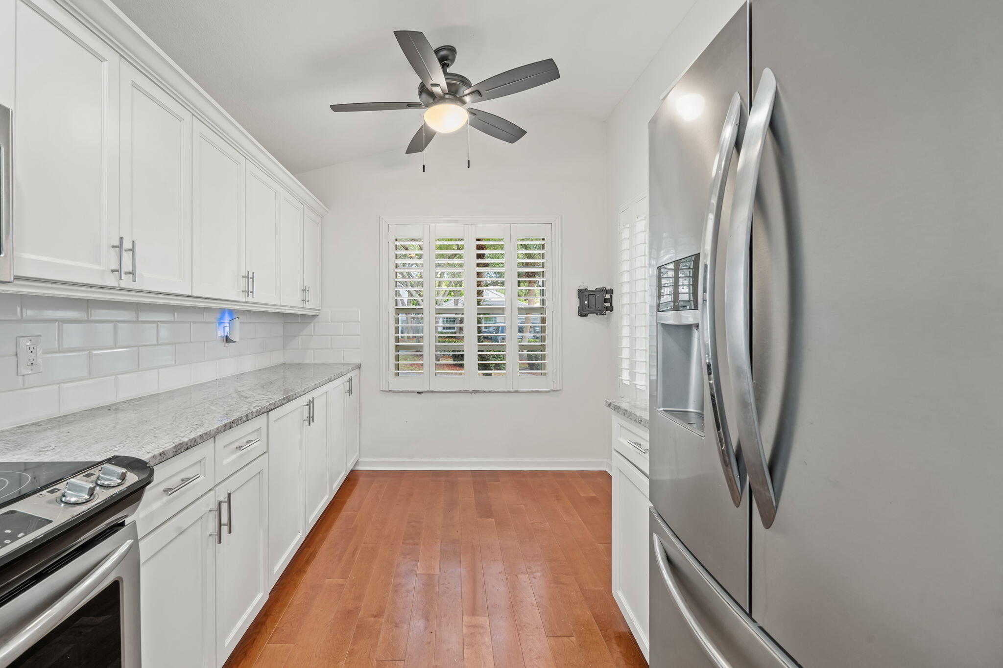 Beautifully remodeled single-story home offering 2 bedrooms, 2 bathrooms, and a 1-car garage. Hardwood floors run throughout the home, complemented by cathedral ceilings and an open, airy floor plan. The custom kitchen features granite countertops, stainless steel appliances, and excellent storage, making it both functional and inviting. The spacious primary suite includes a walk-in closet, dual sinks, and a private water closet. Recent upgrades include a 2017 roof, newer A/C system, and a tankless water heater for added efficiency and peace of mind. Step outside to a private, fully fenced backyard with a covered patio--perfect for relaxing or entertaining. Residents also enjoy access to a community pool. HOA fees include basic cable.Located in the desirable Bristol Club within a sought-after resort-style community, offering world-class amenities including the Honda Classic, five championship golf courses, a renowned spa, sports club, fitness center, tennis courts, croquet, parks, miles of walking trails, and a wide variety of dining and shopping options. HOA: $254/month | POA: $915/year