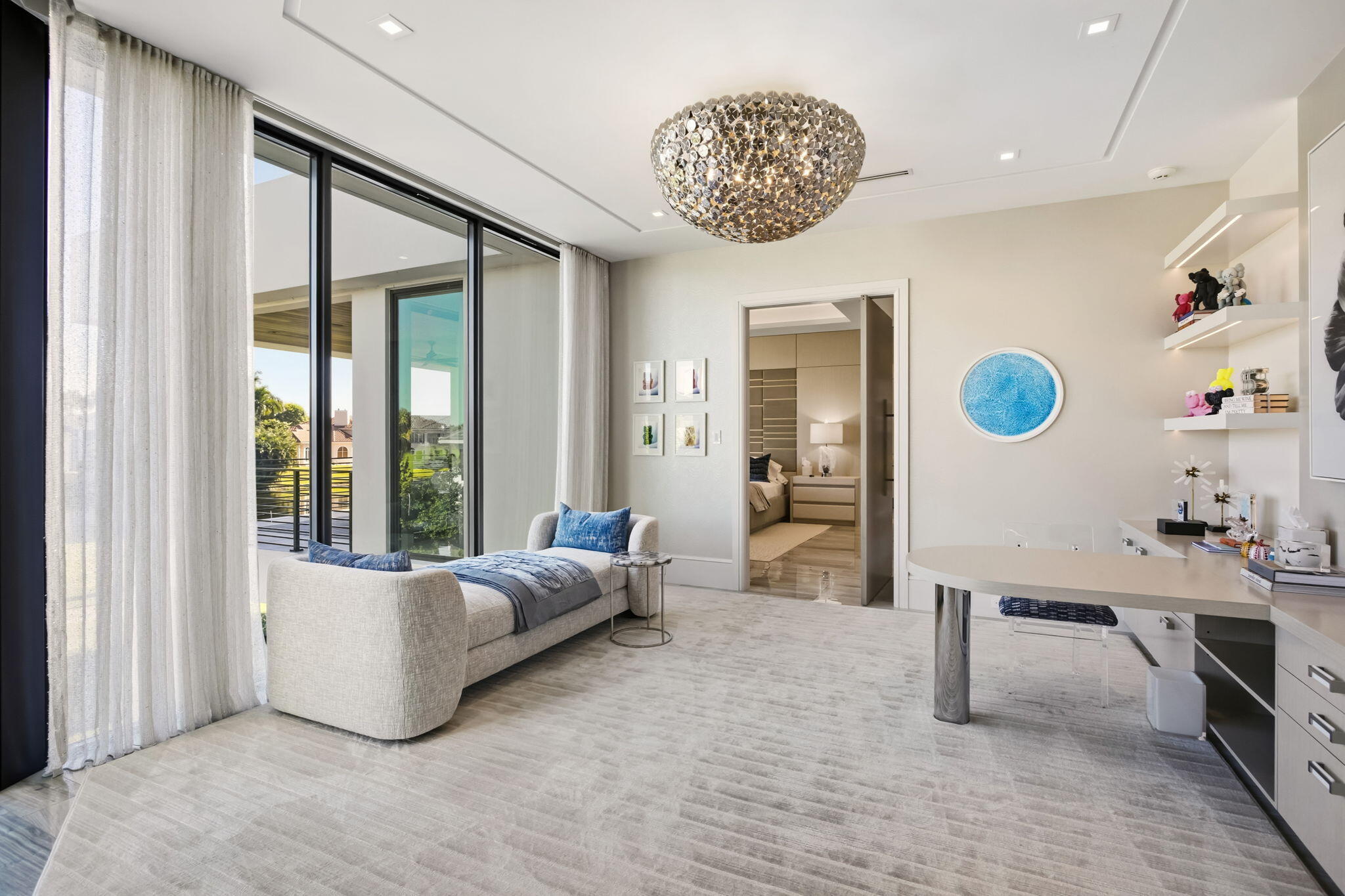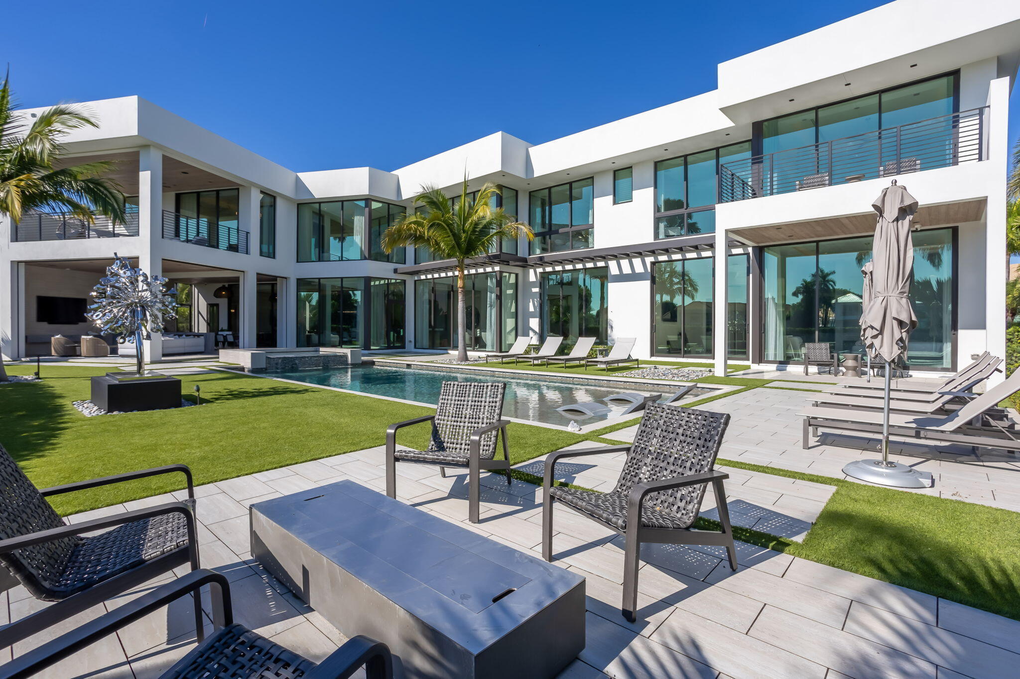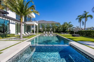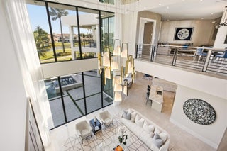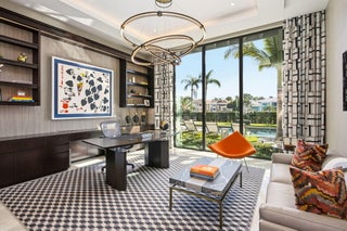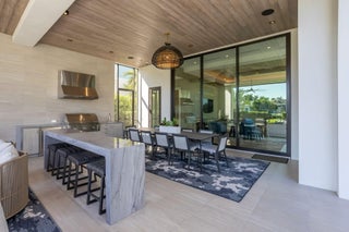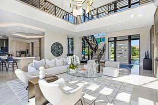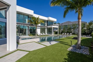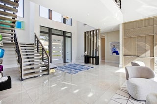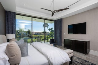 Furnished Contemporary -Magnificence begins on this half acre corner cul-de-sac property, where a circular driveway with separate entrance to the four car garage, leads to an impressive two-story covered entry and foyer. A two-story great room with accent fireplace, overlooks the open pool, patio, golf course and lake views. Featured is a first floor office, VIP bedroom suite and an en-suite bedroom. A central kitchen opens to the great room, dining area and family room. A covered exterior dining and lounge area with summer kitchen overlooks an oversized pool, spa and backyard area. The second floor features the primary suite with sitting area, with dual walk-in closets and covered balcony, in addition to a secondary VIP suite and two additional en suite bedrooms. See MORESold Furnished 2 story foyer Designer foyer chandelier Custom Front Entry Doors Marble floors/ porcelain 4 car garage Carrier A/C 10kw 2022 Carrier A/C 8kw Carrier a/c 10kw #5 Elevator Plantation shutters through out Great Room Architectural element wall panel Matching storage media cabinet Stone decorative fireplace Electric fireplace Gold and quartz chandelier Volume ceilings Floor to ceiling impact windows overlooking pool, spa, artificial turf- grass and golf course Powder room Blue stone countertop and sink Blue glass tile Family room Designer ceiling Fabric wall paper Built in shelves Built in cabinets Kitchen Stone countertops Silver & quartz Thermador 6 gas range Thermador wall oven Thermador microwave Thermador gas hood 2 Thermador dishwasher Thermador wine cooler Miele Wall coffee maker Thermador panel refrigerator and freezer Butler's pantry with built in shelves Dining room Mudroom Built in bench and cabinets for storage Laundry utility room LG washer and dryer Built in cabinets and shelves Cabana bathroom Tiled accent wall Stone counter top Downstairs bedroom/gym Bathroom with tub Blue tile wall Leather wall paper Downstairs ensuite Built in desk Patterned metallic wall paper Sliding doors to covered patio Walk in closet Bathroom with dual sink Built in cabinets Vanity Sunken walk in shower Frameless Glass door Blue tile and marble shower walls Water closet Office Hardwood book shelves Leather wall paper Mesh metal lighting fixture Second Floor Loft Porcelain tile throughout Metallic wall paper 2nd upstairs utility/laundry room LG washer and dryer Granite stone countertops Sink Built in shelves 2 A/C closets 2 Bedroom suite With walk in closets and built ins Walk in showers 3rd bedroom suite Walk in closet Built in desk. Decorative wall paper Bathroom with dual sink Walk in shower Primary bedroom Sitting room and office Built in desk and shelves Silver circular chandelier Upstairs covered balcony custom panel walls Velvet and brass built in headboard Dual vanity and sinks Led mirrors 2 walk in closets Wetstyle bathtub Double water closets Oversized marble walk in shower Built in bench Large walk in closet with storage island Custom Built in closets Full size mirror Double decorative chandeliers Built in dressers 2 Covered Patio Summer kitchen Bedona built in grill Designer ceiling Outdoor rattan chandelier Oversized ceiling fan Turf grass Tiled and turf outdoor yard Pool Spa Outdoor Sculpture conveys with full asking price Great Room 25 x 22 Office 17 x 12 Kitchen 16 x 12 Dining room 17 x 12 Family room 27 x 21 Bedroom 6/gym 17 x 15 VIP Suite downstairs 17 x 16 Primary bedroom 19 x 16 Primary sitting room 16 x 11 VIP suite upstairs 17 x 16 Bedroom 4 14 x 17 Bedroom 5 14 x 17